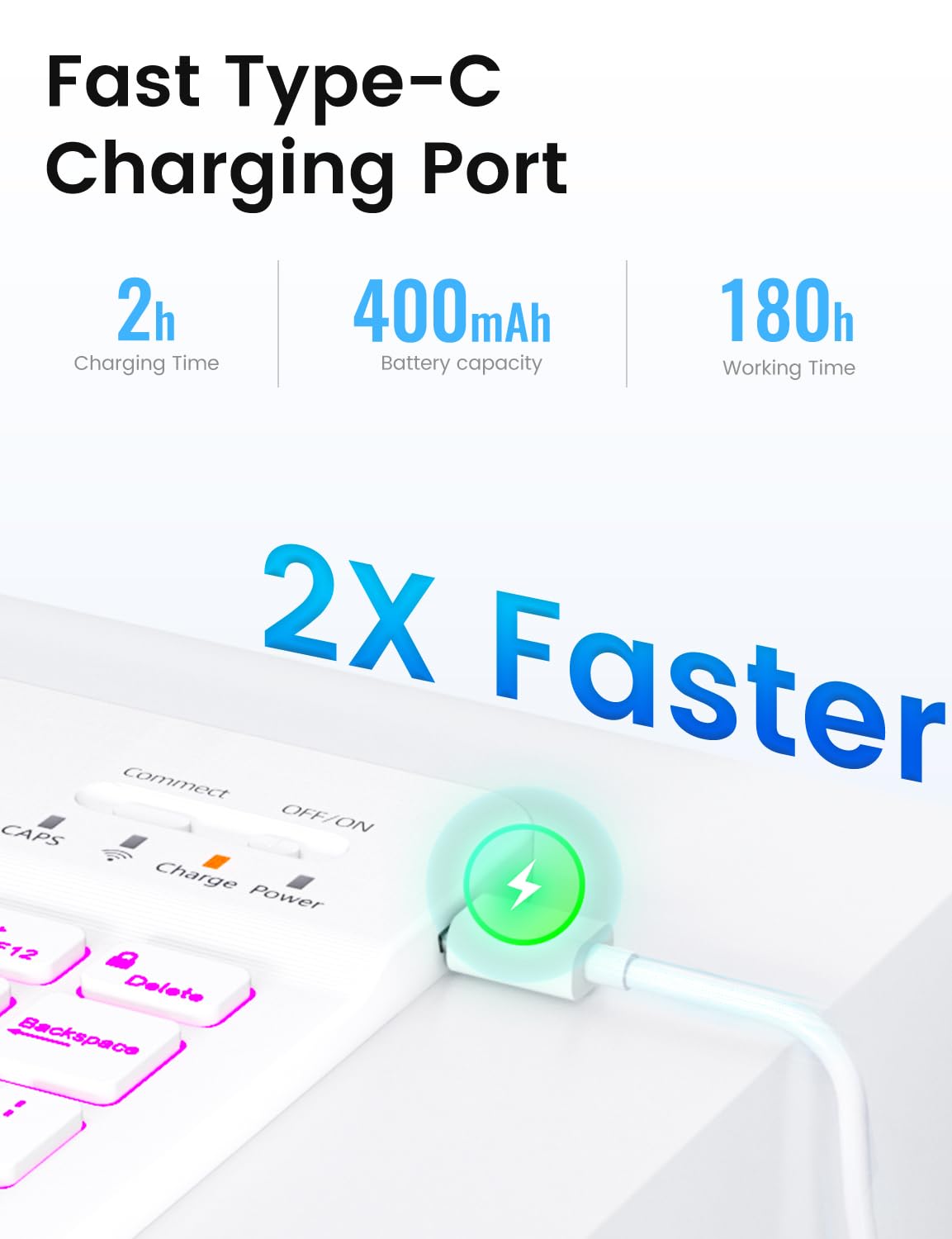 - Rechargeable and Long Life Battery Our keyboard case for Pad Pro 11'' utilizes an even more energy-efficient and low-consumption battery, ensuring you can use at least 180 hours. It can be fully charged in 2 hours with Type-C charging cable, don't need to replace battery