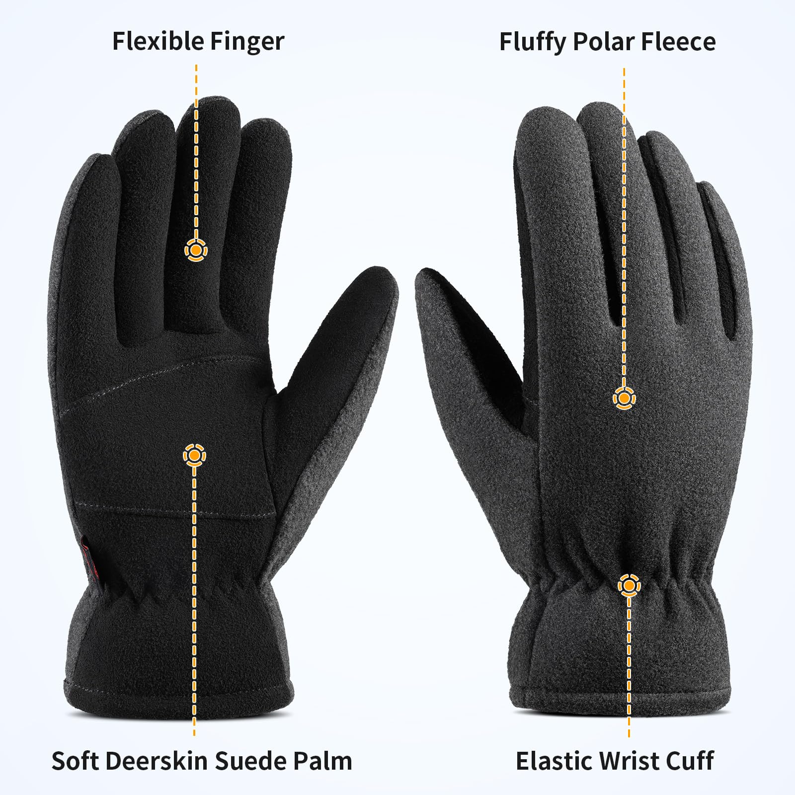 - Original Gloves – Winter Gloves, -20°F(-29) Cold Proof Thermal Work Glove - Deerskin Suede Leather Palm and Polar Fleece Back with Heatlok Insulated Cotton - Hands Warm in Cold Weather for Women and Men by OZERO