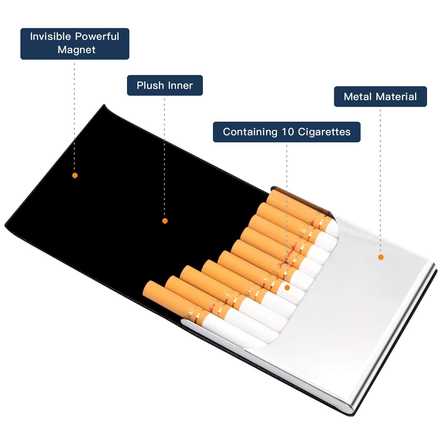 - Stylish design and sturdy construction, Interior pockets hold 10 pcs regular cigarettes.