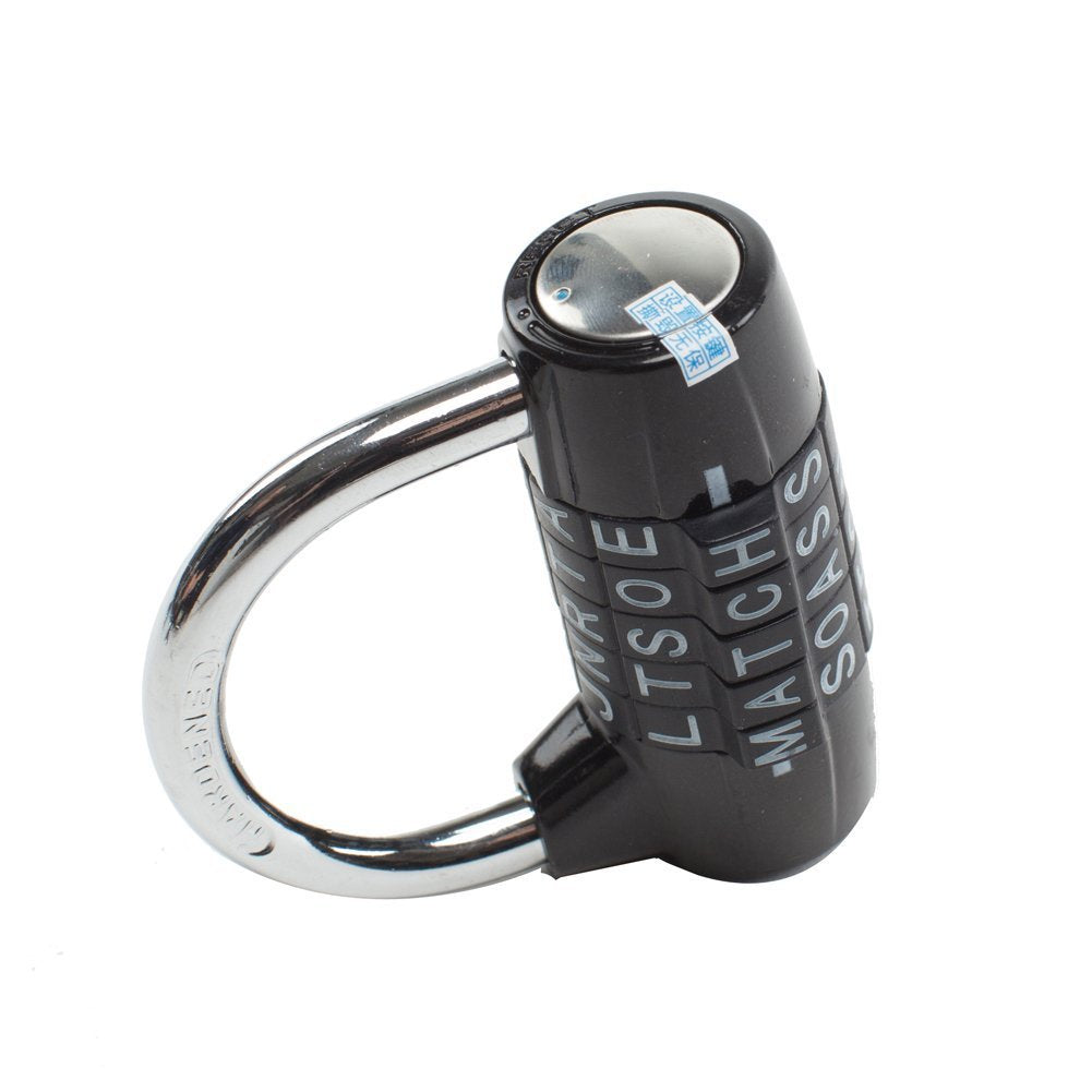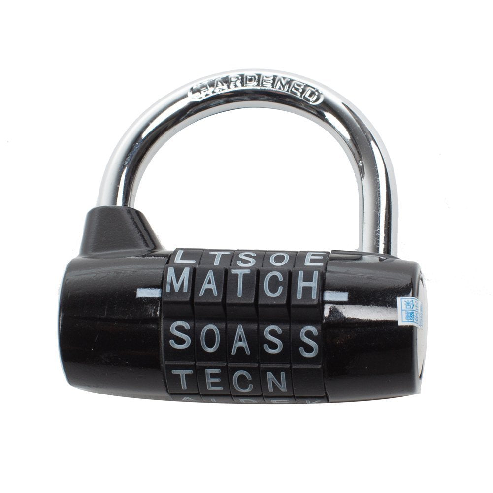 The word lock padlock features a 2/5/8 hardened steel shackle and body for maximum safety. With 100,000 different letter combinations, you can choose words that are easy to remember, but no one can guess.