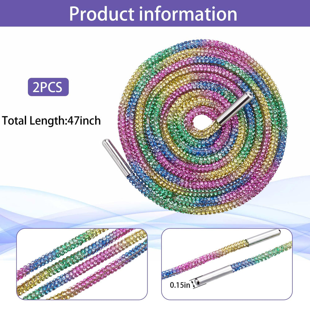 - Packing: The rhinestones tube ropes set including 2Pair(4Laces)tennis shoe laces. The length is 47,120cm. Great for any stage costume or to add as a trim on any out fit.