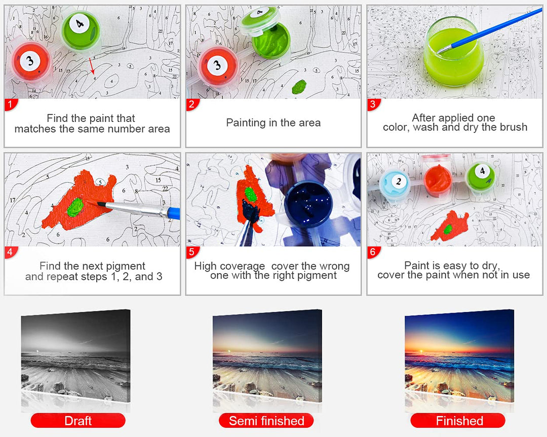 - Original Adults' Paint-By-Number Kits – Paint by Numbers for Adults, DIY Oil Painting Kit on Canvas with Paint Brushes and Acrylic Pigment, Beach at Sunset Adult Paint by Numbers, 16X20 Inch Flameless Painting by Numbers by TUMOVO