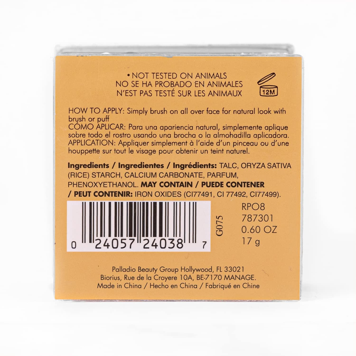 | directions | Use alone or on top of your favorite Palladio foundation. For on-the-go rice powder, try our Rice Paper Blotting Tissues. |