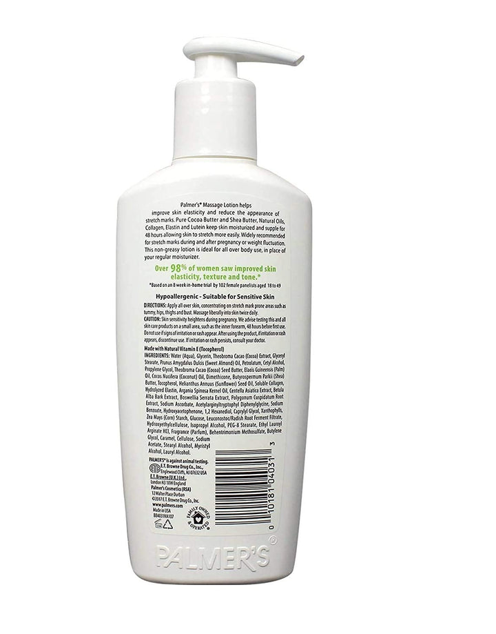 - PROVEN RESULTS - There's a reason Palmer's Cocoa Butter Formula Massage Lotion For Stretch Marks is relied on by women all over the country: it works. Studies have shown that our lotion improved skin elasticity in 97% of test subjects. For optimal results, we recommended using Palmer's Massage Lotion in place of your usual moisture all over the body 3 times per day.