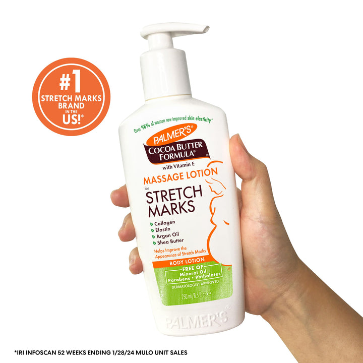 - Original Maternity – Palmer's Cocoa Butter Formula Massage Lotion For Stretch Marks, Pregnancy Skin Care, Belly Cream with Collagen, Elastin, Argan OIl and Shea Butter, 8.5 Ounces by Palmer's