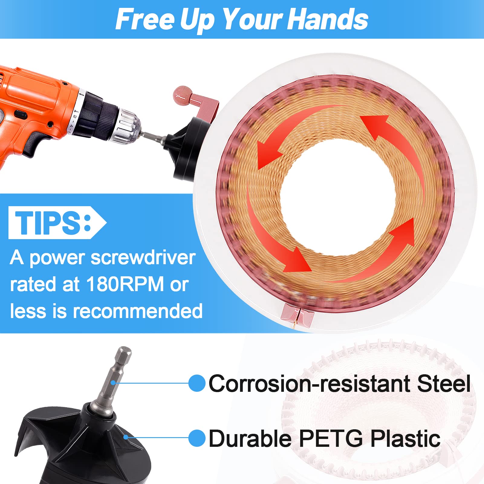 - [Reliable Materials] The crank handle knitting machine drill attachment is made of PETG plastic and the hex bit are made of strong and corrosion-resistant steel. Because of these quality materials, our products are durable enough to serve you for a long time.