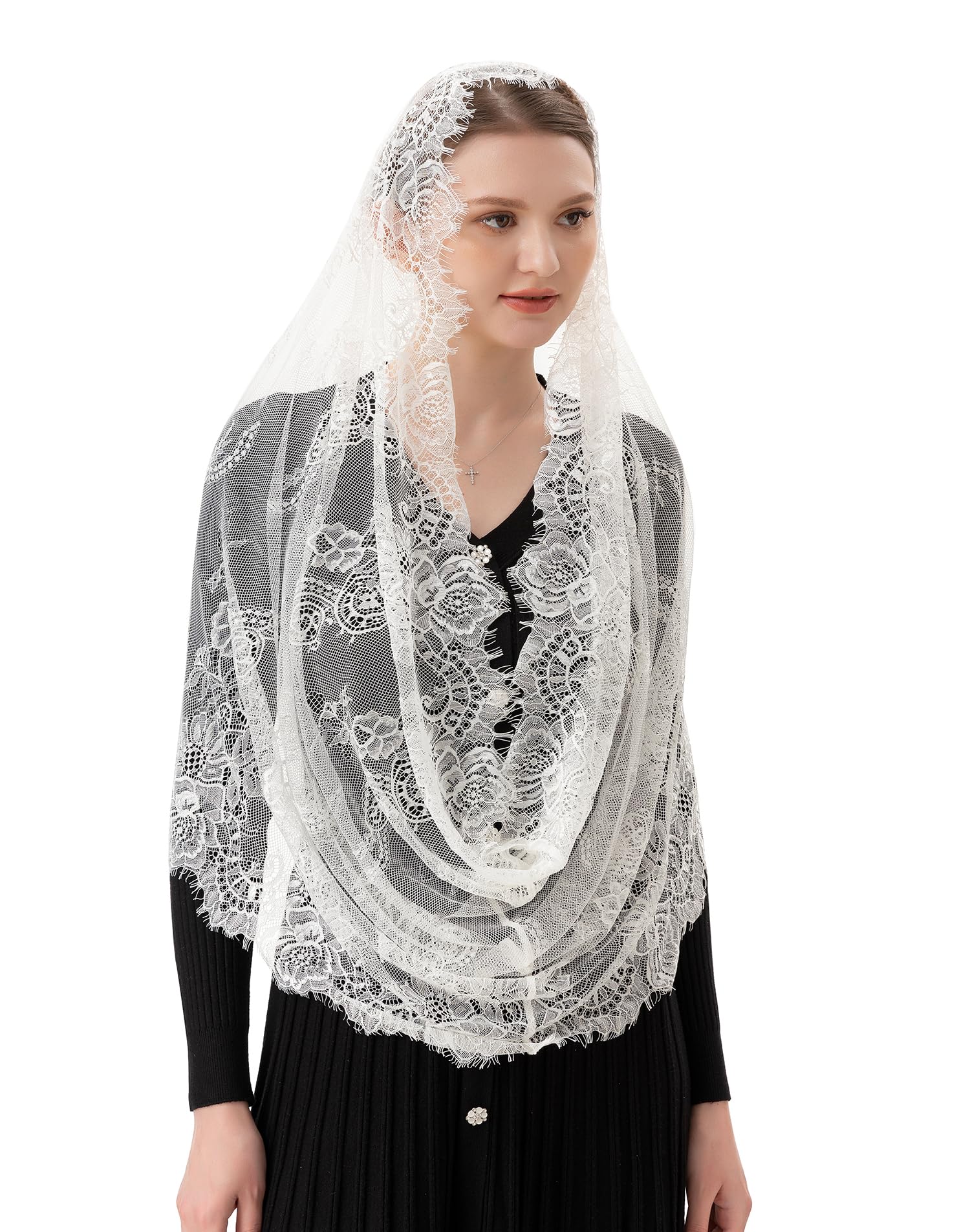 - Original Bridal Veils – Spanish Style Lace Traditional Vintage Inspired Infinity Shape Mantilla Veil Latin Mass Head Covering (Ivory) by PAMOR