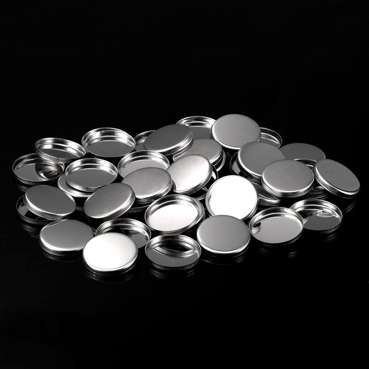 - Empty round metal makeup pans: 50 pack silver metal eyeshadow palette pans, each size is 26 mm in diameter, 3.5 mm high, fit for most magnets palettes