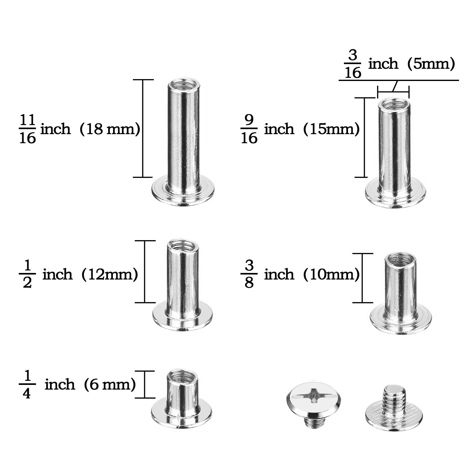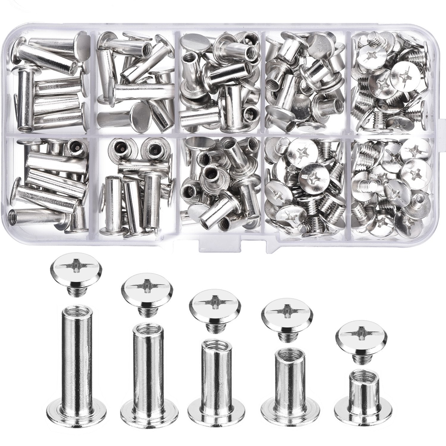 - Original Leathercraft Accessories – 80 Set Chicago Binding Screws Assorted Kit 5 Sizes Metal Round Cross Head Stud Screw Posts Nail Rivet Chicago Button for DIY Leather Decoration Bookbinding by Pangda