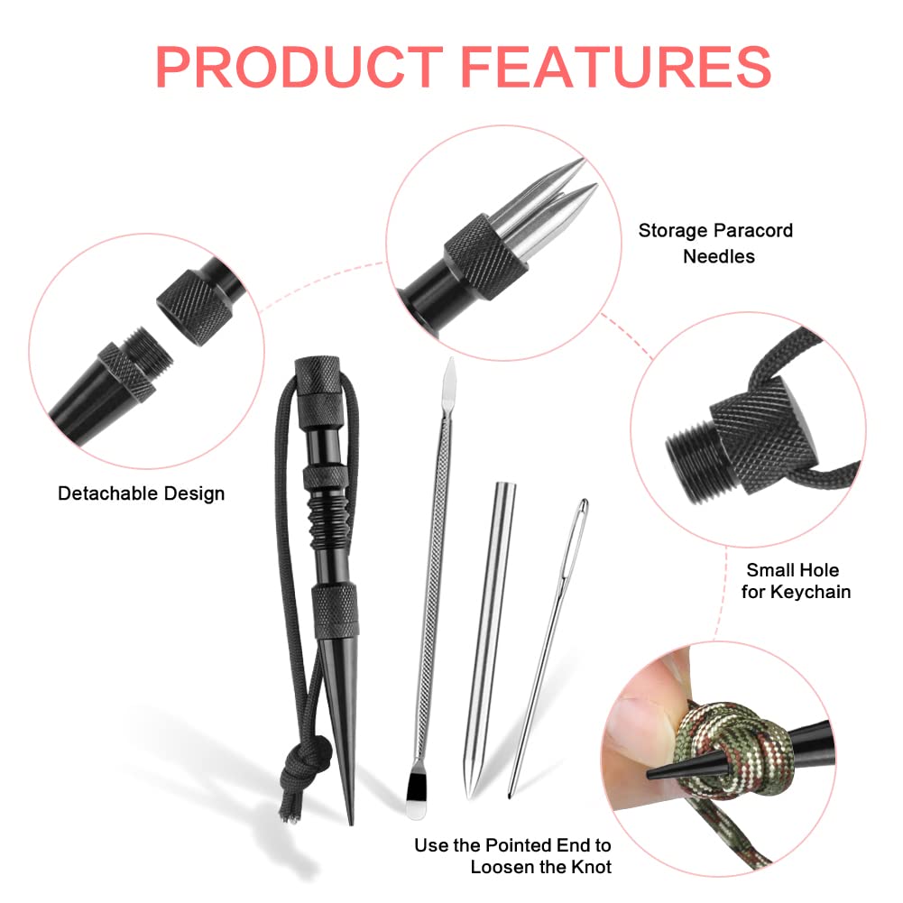 - Upgrade Multifuntional Marlin Spikethe marlin spike is made of aluminium alloy, its surface is polished, corrosion-resistant and colorfast, could be a practical knotter tool, nice for unfastening knot. Its extra upper and lower heads are detachable so that you can storage paracord needles in it, light and easy to carry, you can take it with you at any time.