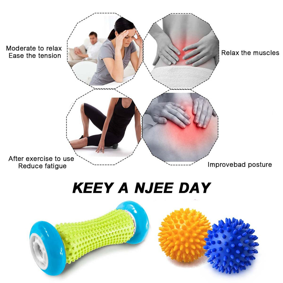 - [1 Foot Massage Roller Plus 2 Spiky Massage Balls] - Foot Massage Roller Designed to be 6.7 inch in length with 2.7 inch in diamete, PVC material. Durable PU and TPE protect the foot roller from losing shape. Environmental protection and no peculiar smell.