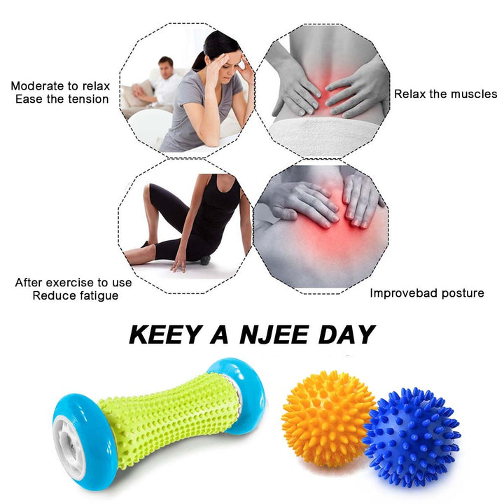 - Original Foot Massagers – Foot Massage Roller Spiky Ball Foot Pain Relief Massager Relieve Plantar Fasciitis and Heel Foot Arch Pain and Relax Shoulder Foot Back Leg Hand, Included 1 Roller & 2 Spiky Balls (Light Blue) by Pasnity