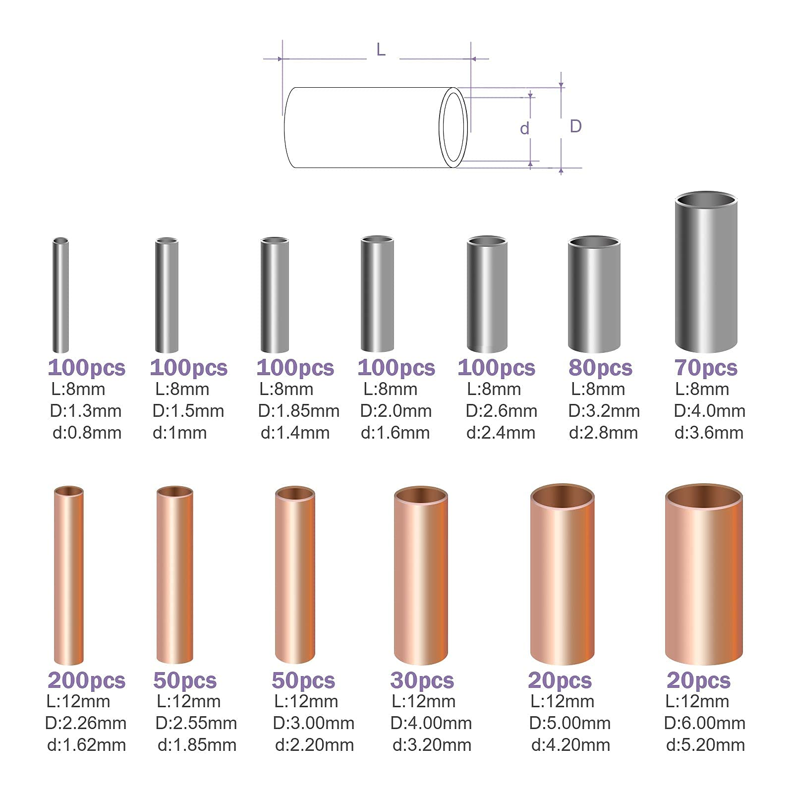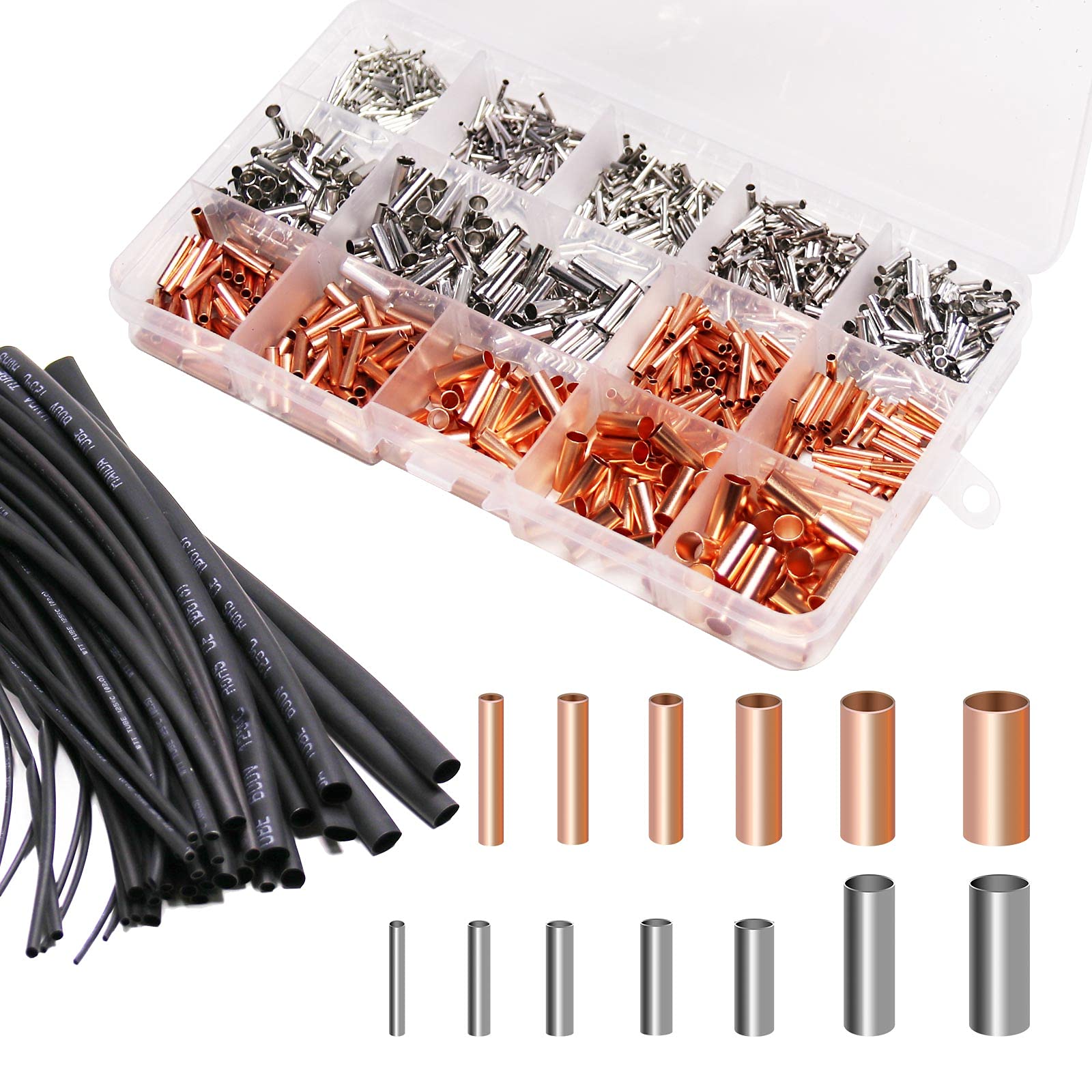 - Original Butt – 970Pcs Wire Ferrules Kit Tinned Copper Crimp Connector Non Insulated Electrical Cable Pin Cord End Terminal Assortment Kit with 48Pcs Heat Shrink Tubing by Pastall