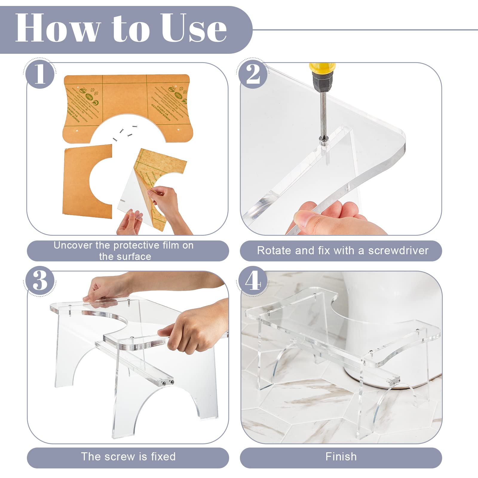 - Easy to Assemble: the acrylic step stool is easy to assemble and disassemble, with round and polished edges to avoid bumps and scratches, you can use it with confidence