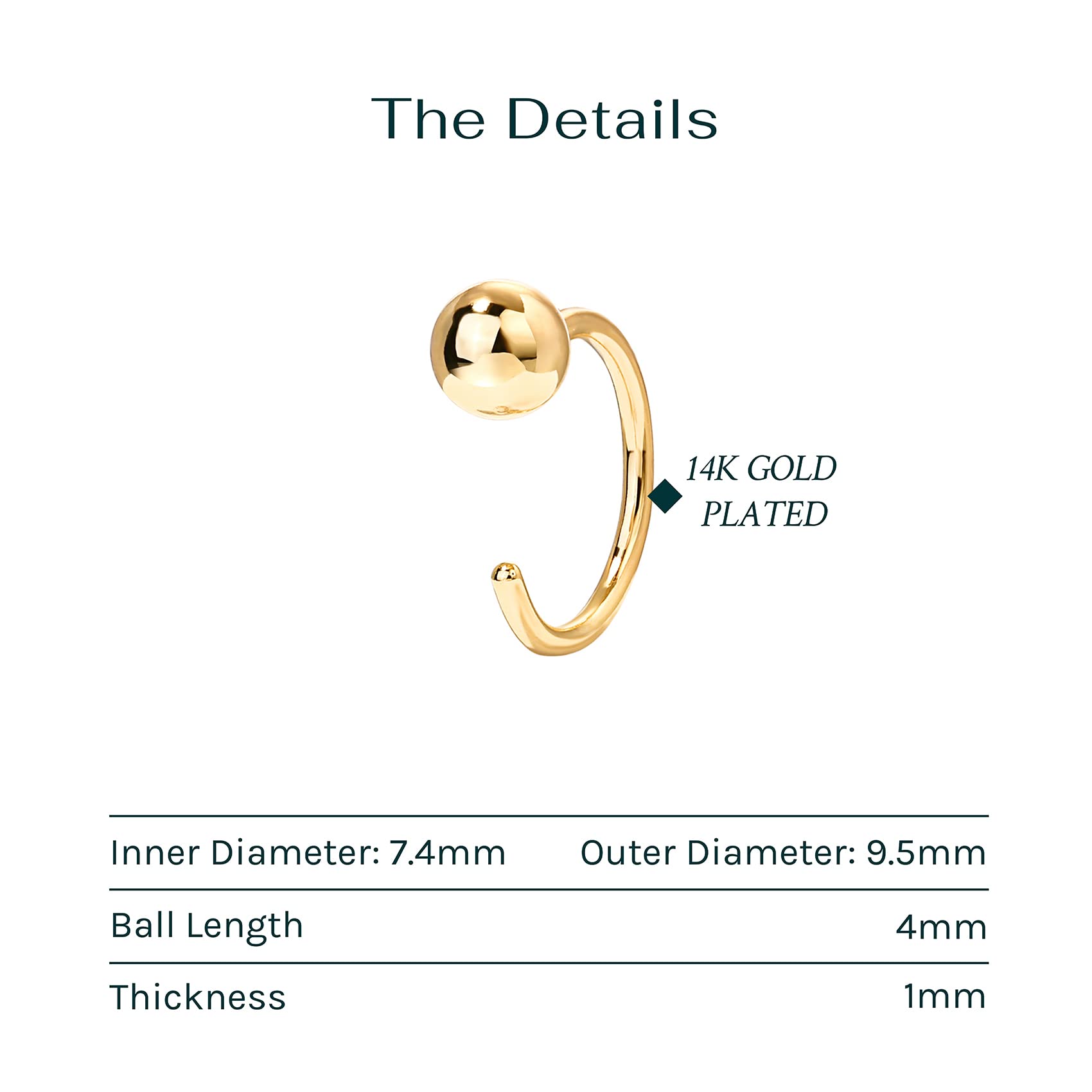 - Stylish, simple and unique, these 14K gold plated half hoop huggie earrings come with a classic ball design and don't need backings! This stylish earring is perfect to put on everyday, wherever you go.