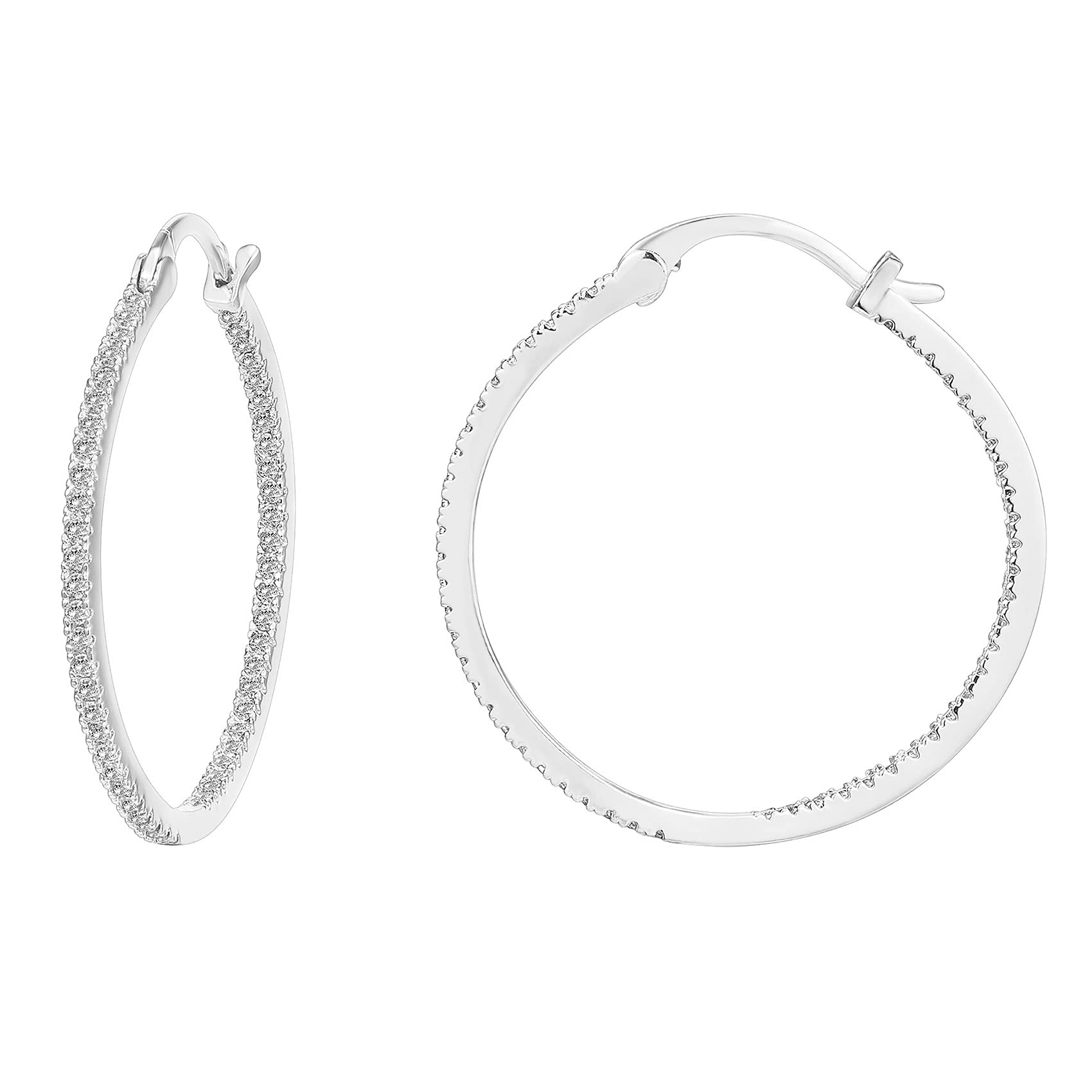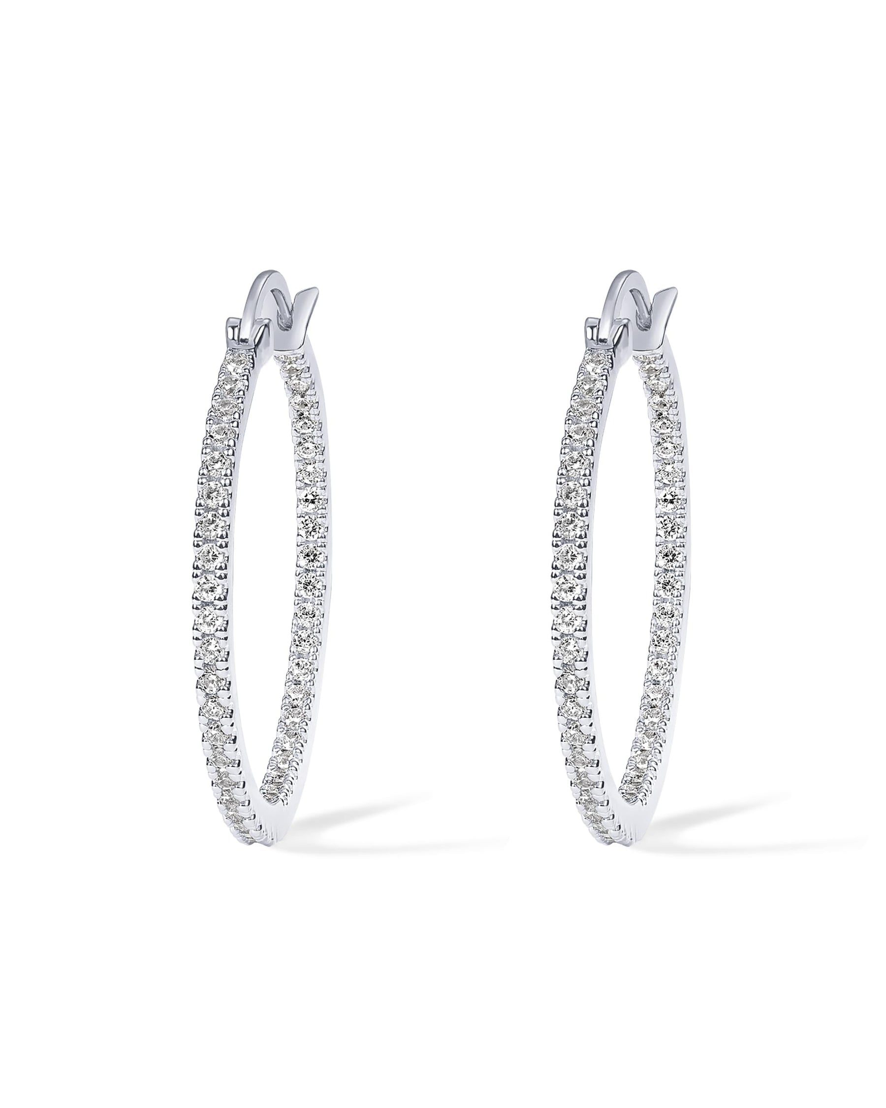 - These hoop earrings are crafted to be lightweight for easy all-day wear. They are plated in rhodium and feature sterling silver posts for a long-lasting brilliant finish that is hypoallergenic, lead-free, and nickel-free.