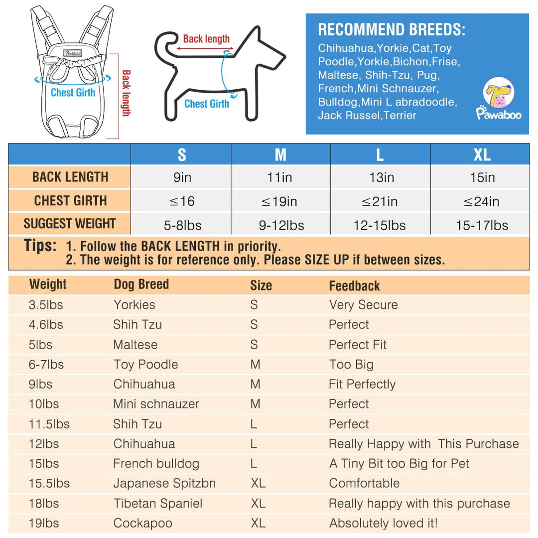 - About Size: Pawaboo concerned about how to choose the corresponding size for different breeds and sizes of pets, please give priority to confirming the distance between the BACK LENGTH and CHEST GIRTH of the pet before purchase; if you have any questions about choosing the size, please contact us first.