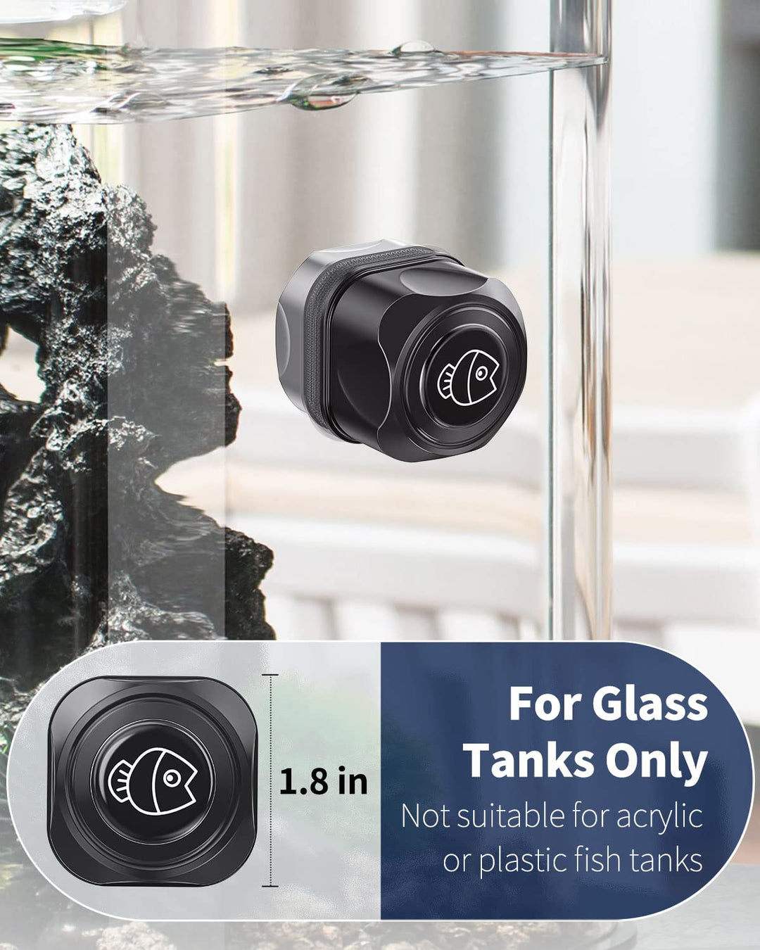 - For Glass Tanks Only: Measure 1.8 D x 2.3 H. Perfect size for fish tanks up to 30 gallons. Work well to clean glass with thickness less than 4/5 inches. Not Fit for Acrylic or Plastic Tanks!