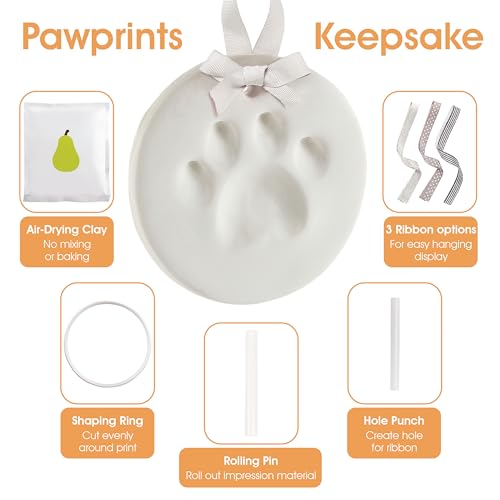 - Kit Includes Everything: This kit includes everything you need to create a beautiful paw print ornament -- 100% pet-safe impression material, a shaping ring, three stylish gray ribbons, and a pin for the perfect finishing touch.
