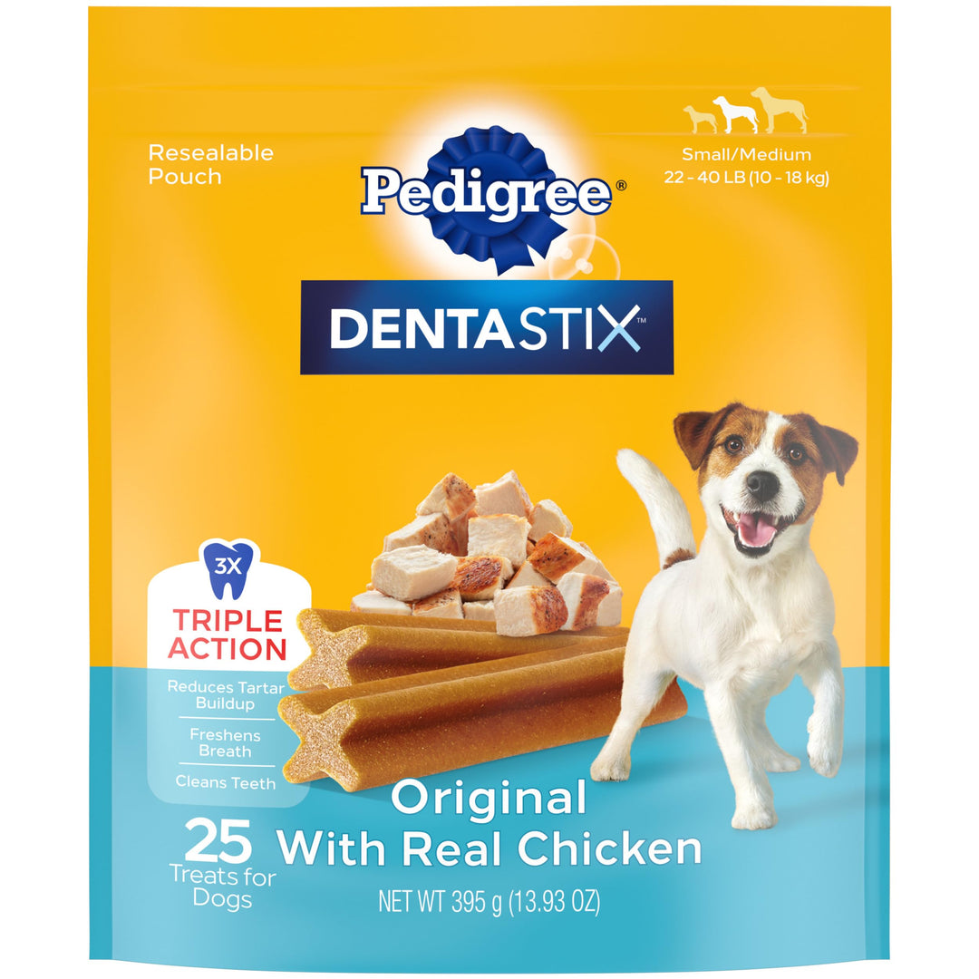 - Original Cookies, Biscuits & Snacks – Dentastix Small & Medium Breed Dog Treats, Original With Real Chicken, 13.93 oz. Bag (25 Treats) by Pedigree