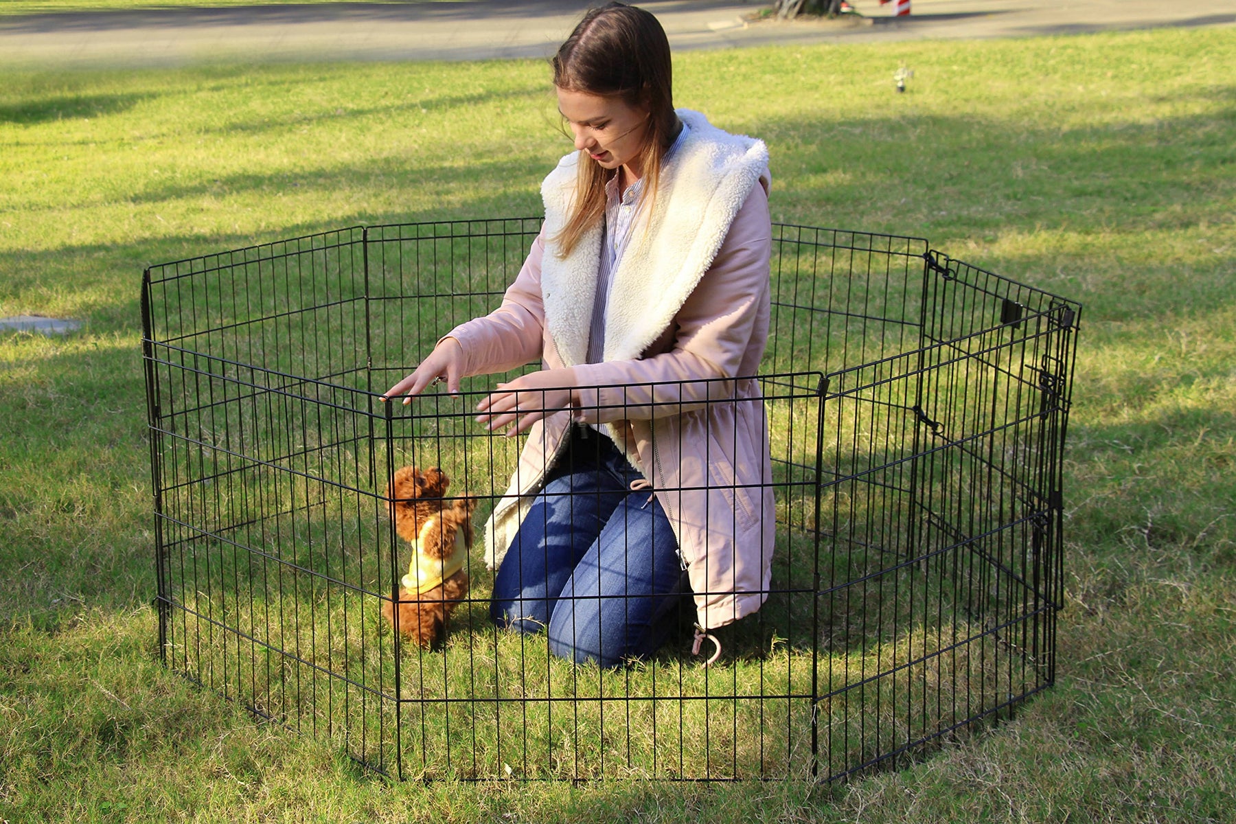 lightweight makes the dog playpen portable. The foldable design makes it easier to store.