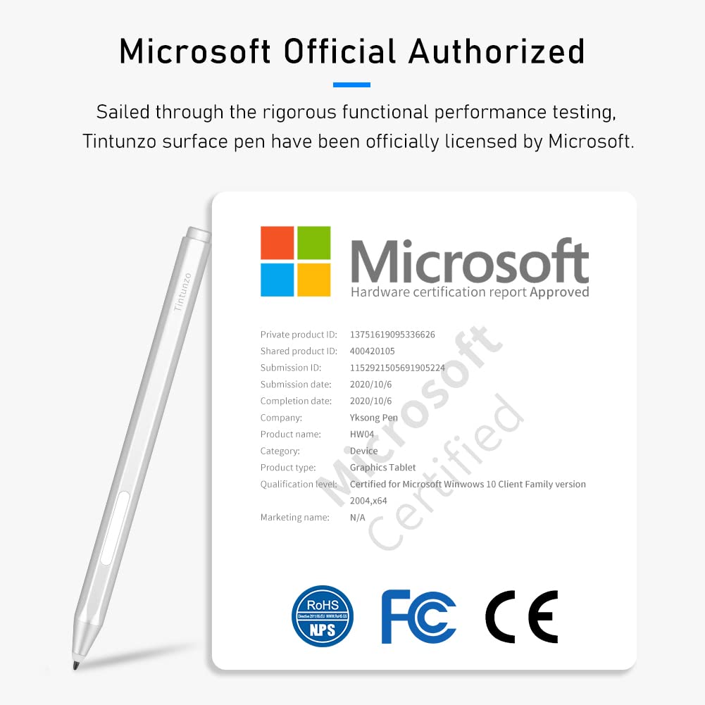 - Microsoft Official Authorized - Officially authorized by Microsoft and uses the authorized chips to match Microsoft devices, which outperforms non-authorized Stylus pens. the Stylus pen also has CE, ROHS, FCC certification, safer and more compatible. Note This stylus doesn't have the top button!