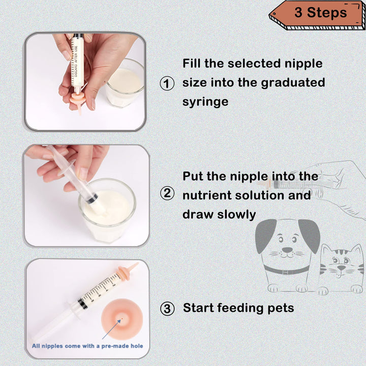 - Original Nursing Supplies – Pet Feeding Nipple for Kitten and Puppy Silicone Feeding Pacifier for Pets and Wildlife - Includes Mini, Original, Medium, Large, Double 1-10ml Oring Syringe by PUPPY KNOW