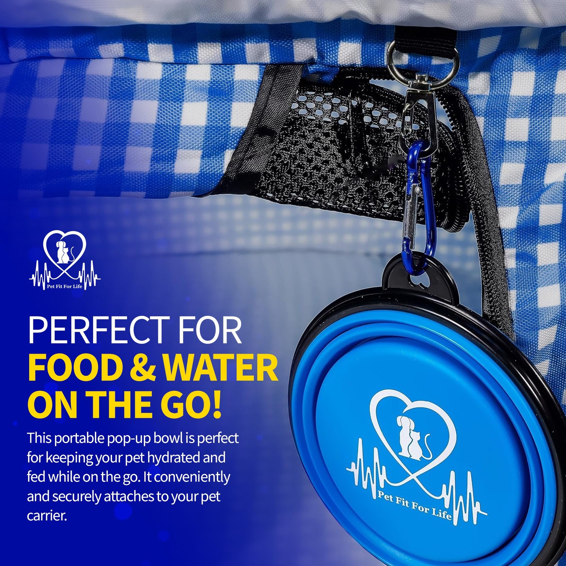 - Original Soft-Sided Carriers – Extra Large Cat Carrier for Travel - Foldable & Portable Collapsible Kennel with Litter Box, Feather Toy & Water/Food Bowl - Ideal for Cars, Long Trips & Indoor Cats - Blue Checkers by Pet Fit For Life
