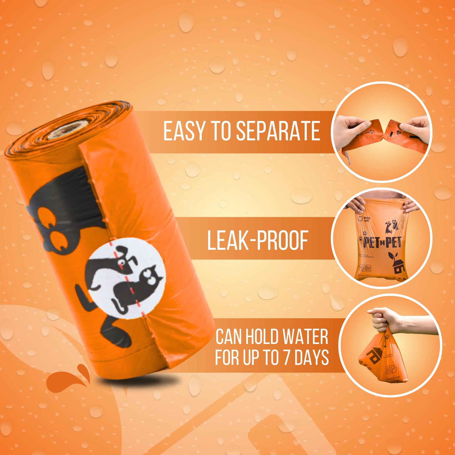 - Original Bags – Pet N Pet 1080 Counts Orange Poop Bags for Dogs, 38% Plant Based & 62% PE Extra Thick Dog Poop Bags Rolls, 9 x 13, Unscented Pet Waste Bag by PET N PET