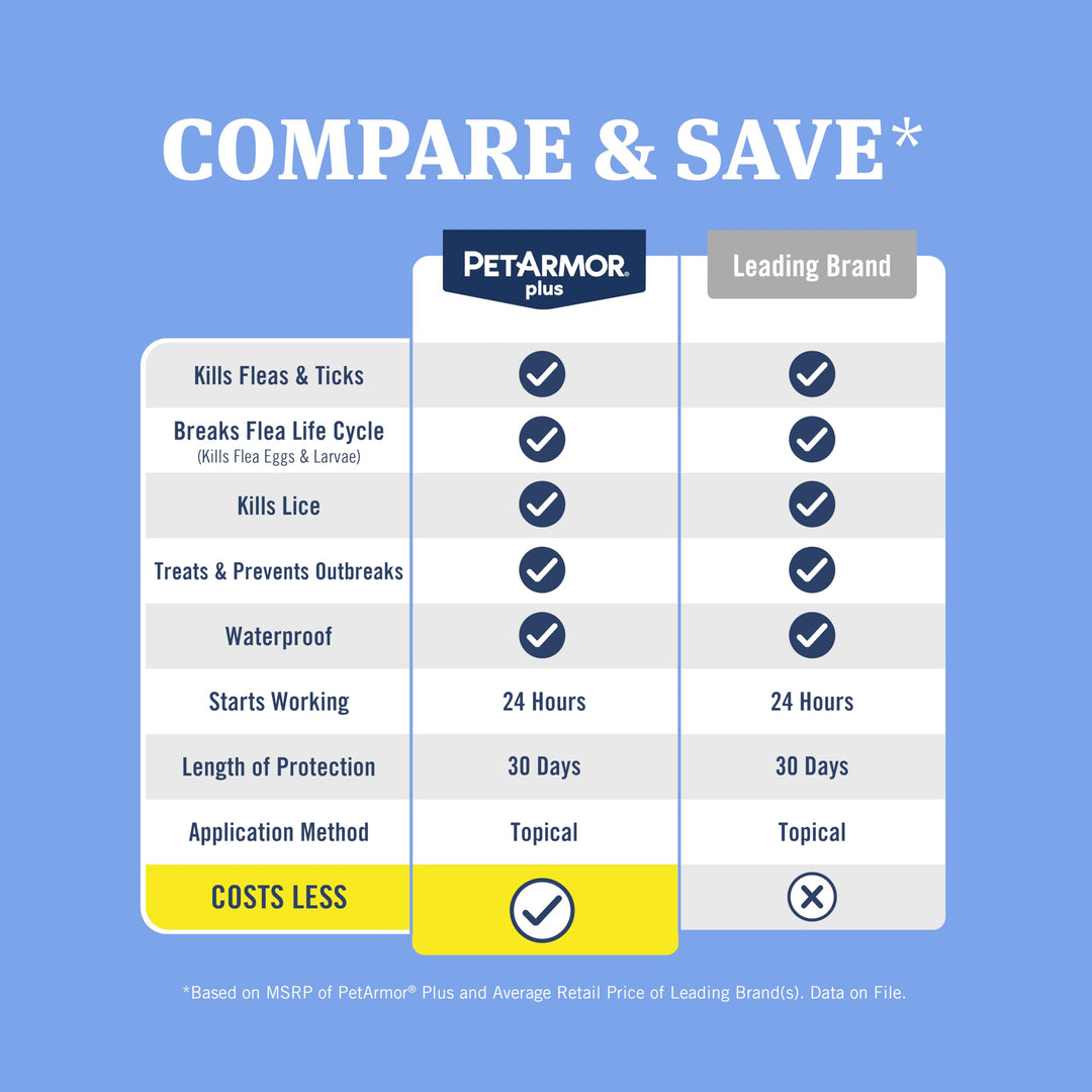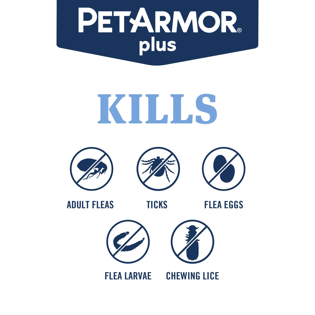 - EFFECTIVE, WATERPROOF FLEA TREATMENT FOR DOGS: PetArmor Plus is a waterproof, flea & tick topical prevention for dogs that kills fleas, flea eggs, flea larvae, ticks, and chewing lice for up to 30 days after application.