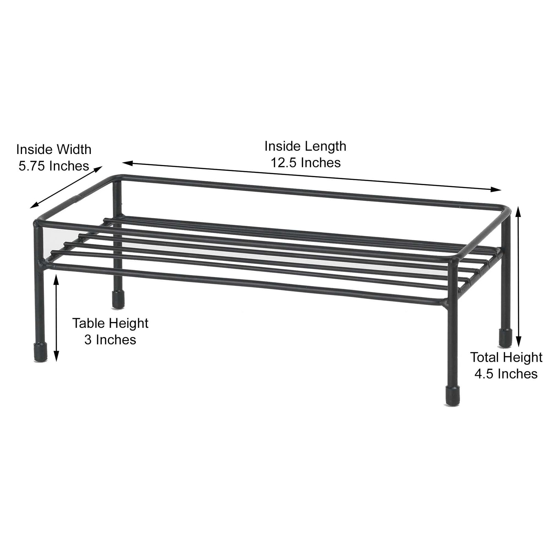 - Dimensions: Outer measurements are 13 inches long by 5.75 inches wide and 4.5 inches tall, with inside dimensions of 12.75 inches long by 5.5 inches wide. The table base is at 3 inches, where the bottom of the bowls will rest.