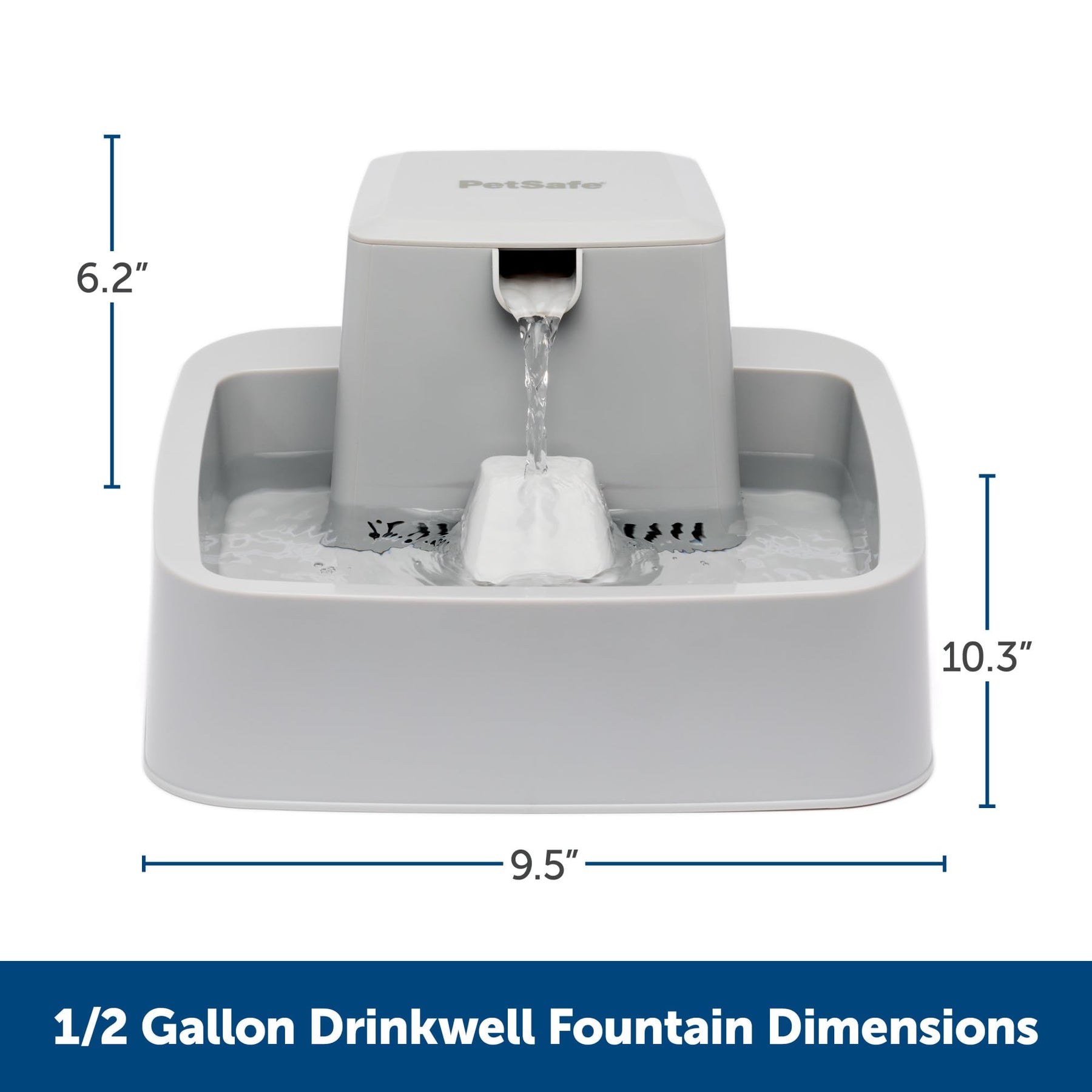 - 1/2-GALLON WATER CAPACITY: This durable plastic pet fountain is a compact size and perfect for cats or small dogs