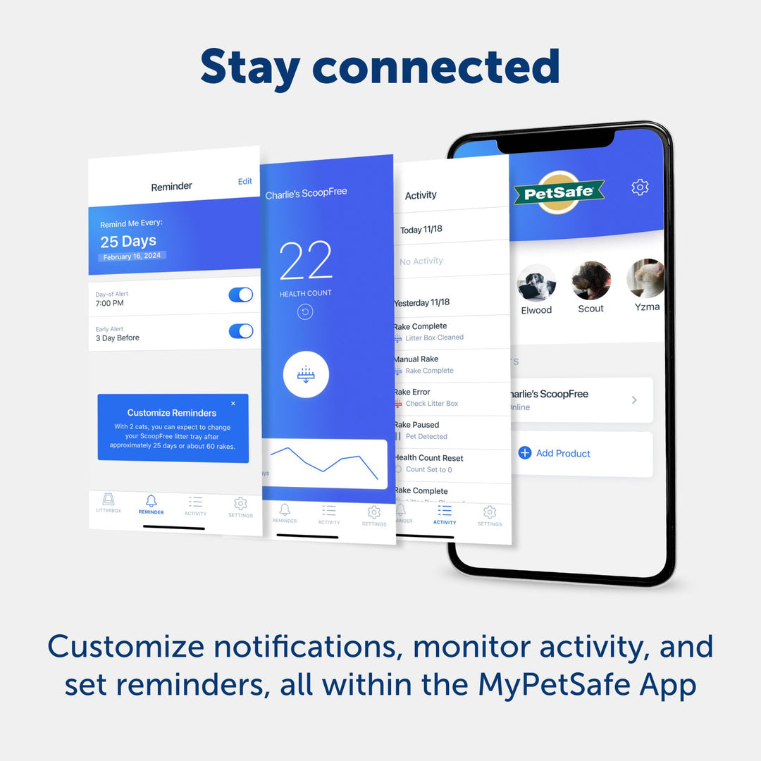 - APP-CONNECTED LITTER BOX: This litter box is connected to the My PetSafe app on your smart phone so you can monitor your cat’s health and her litter box from anywhere, even when you’re not home