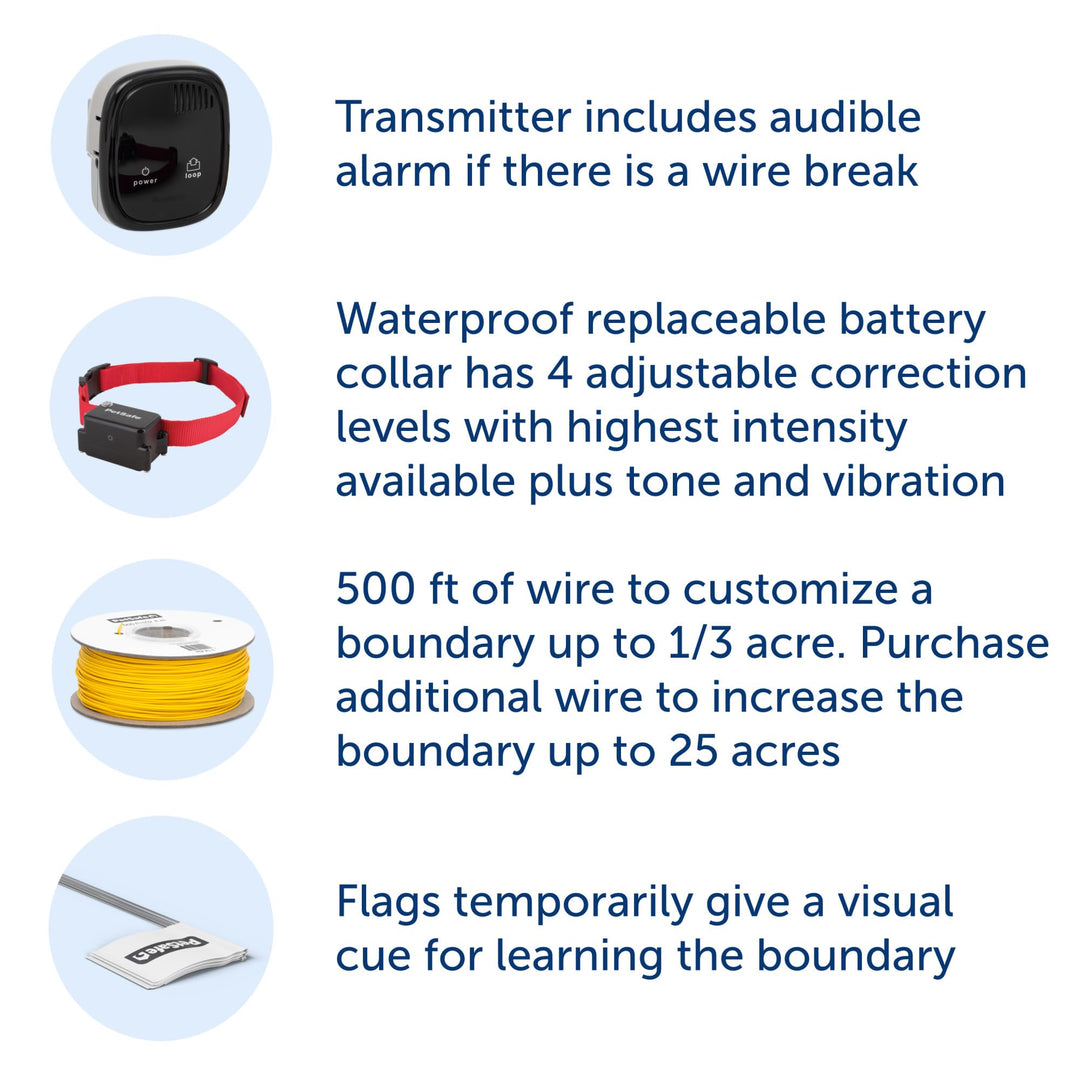 - Original Radio & Wireless Fences – Stubborn Dog In-Ground Pet Fence Electric Fence for Stubborn Dogs (500 Ft 1/3 Acre 20 Gauge Wire Kit) Underground Dog Containment System, for Persistent Pets (Red and Black) by PetSafe