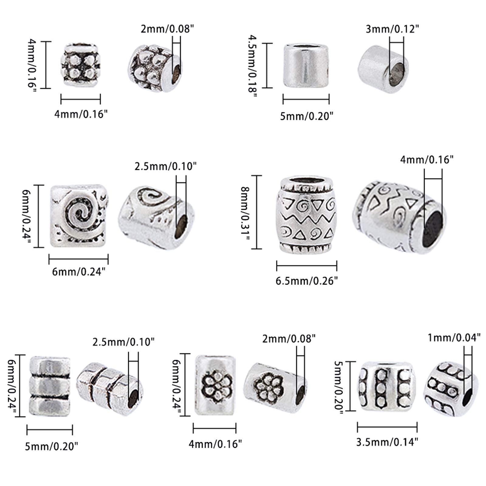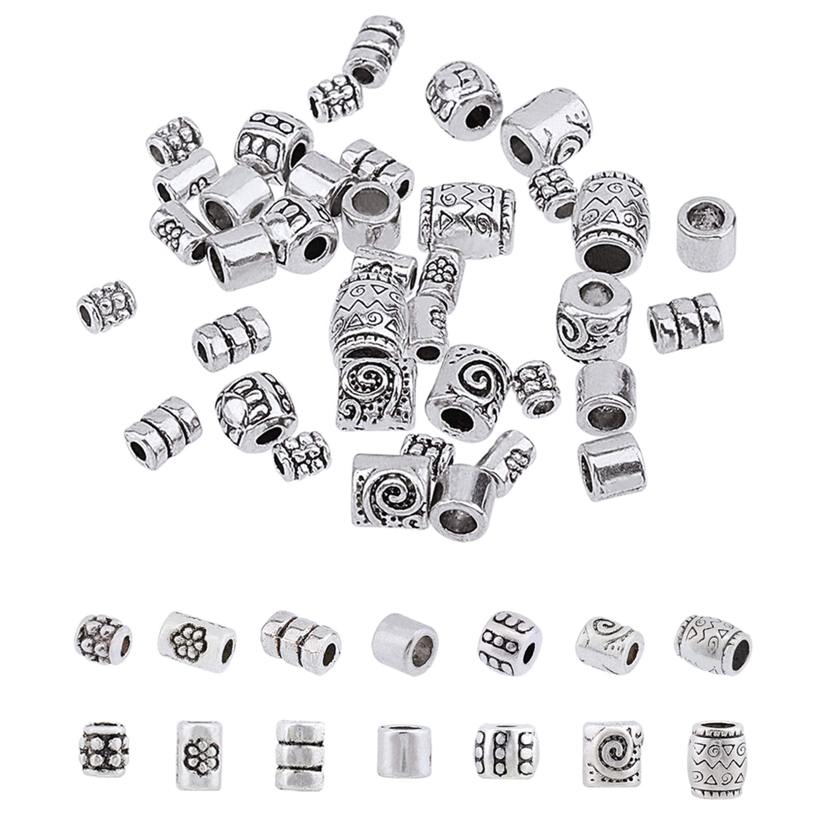 - Original Beading Supplies – 260pcs 7 Style Tibetan Spacer Beads Antique Silver Column Alloy Tube Metal Spacers European Large Hole Loose Beads Spacers for Bracelet Necklace Jewelry Supplies, Hole: 1.5~3.5mm by PH PandaHall