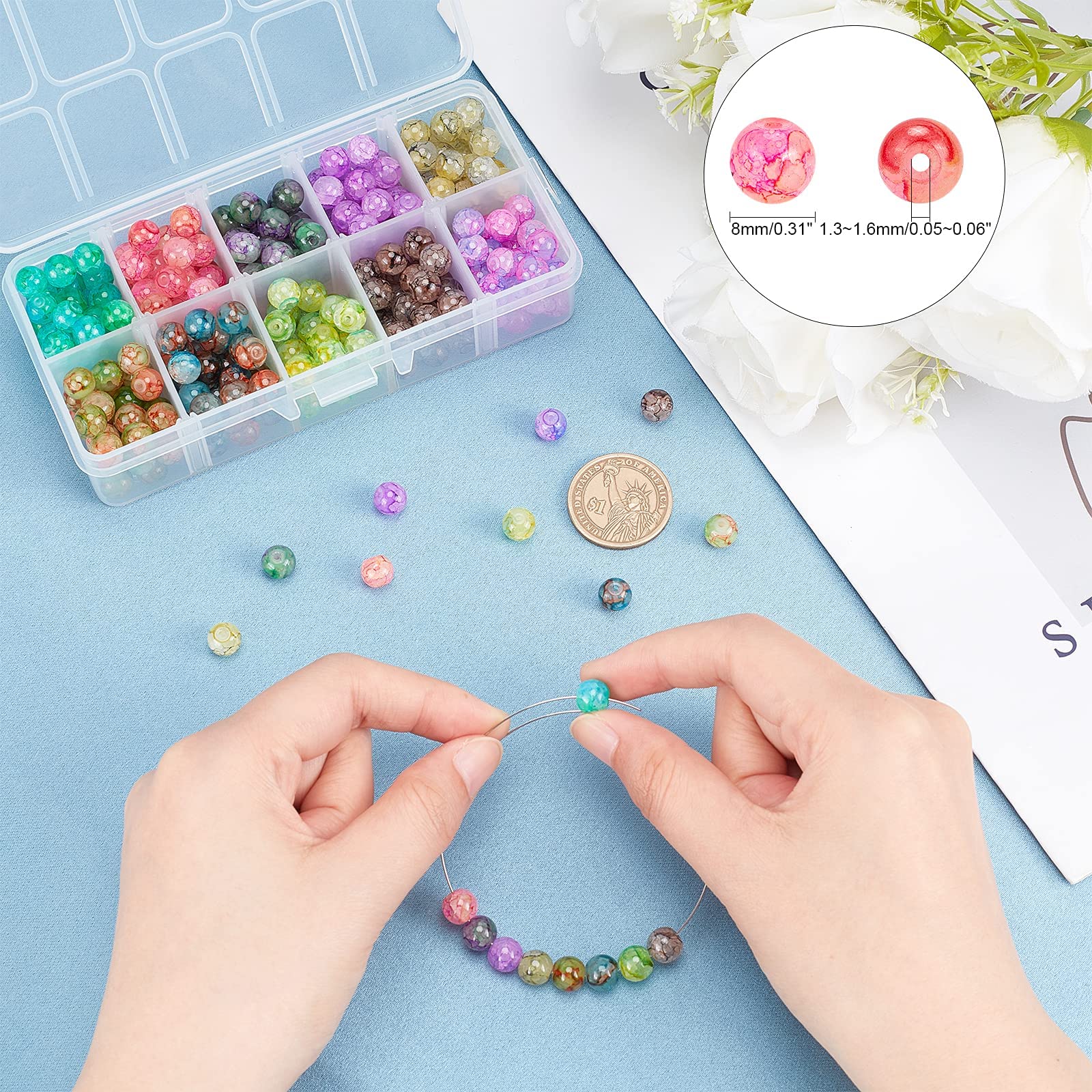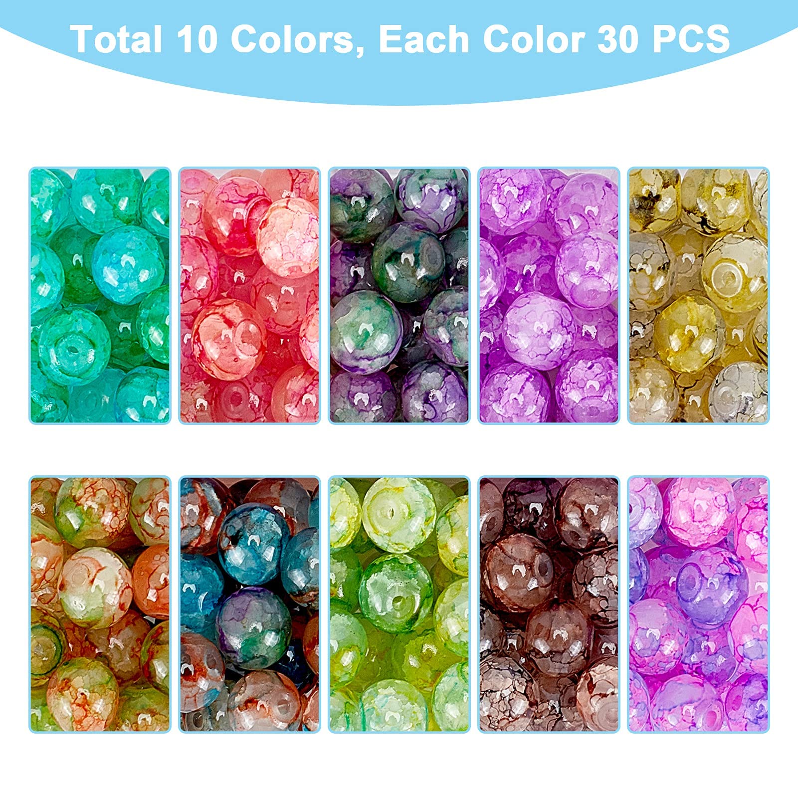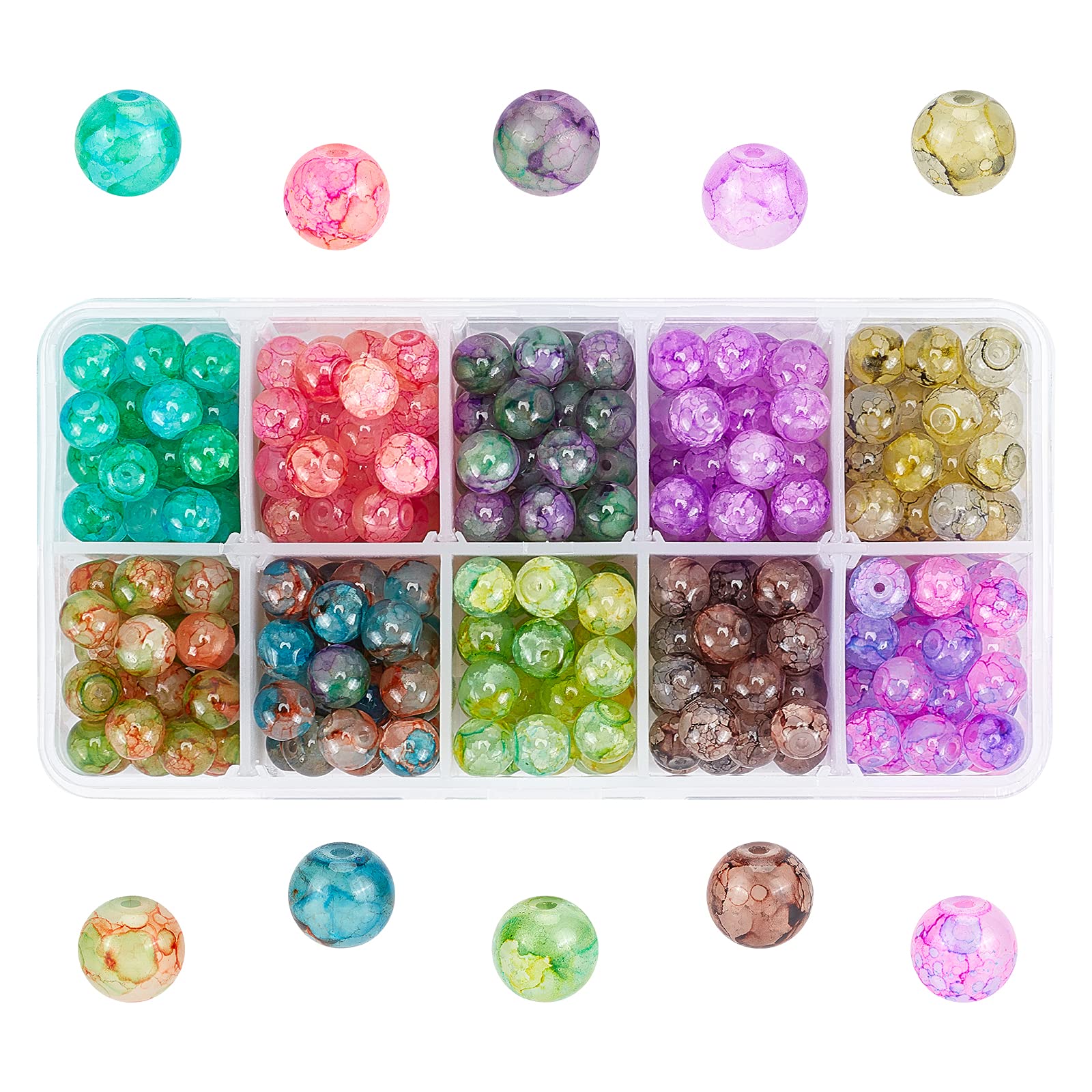 - Original Beading Supplies – 300pcs 8mm Glass Beads Baking Painted Crackle Beads 10 Color Round Glass Loose Beads Imitation Stone Spacers for Necklace Friendship Bracelet Earring Jewelry Making Christmas Ornament by PH PandaHall