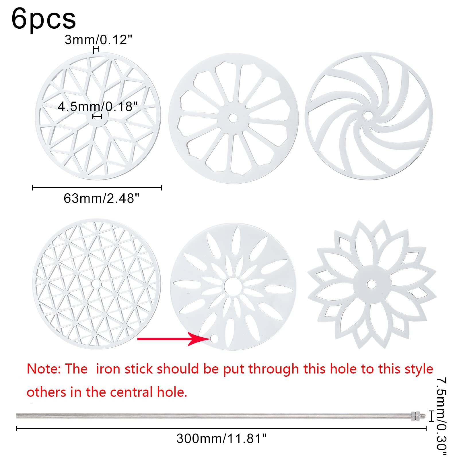 - Soap Mold Set: Come with 6pcs round templates about 6.3cm in diameter, 3mm in thickness, suitabe for 6.5cm round soap mold to make unique soap or candle, and 1pcs 30cm iron stick, about 7.5mm in diameter.