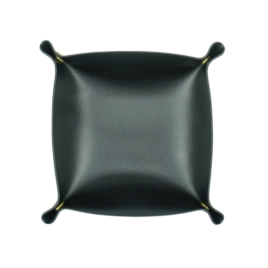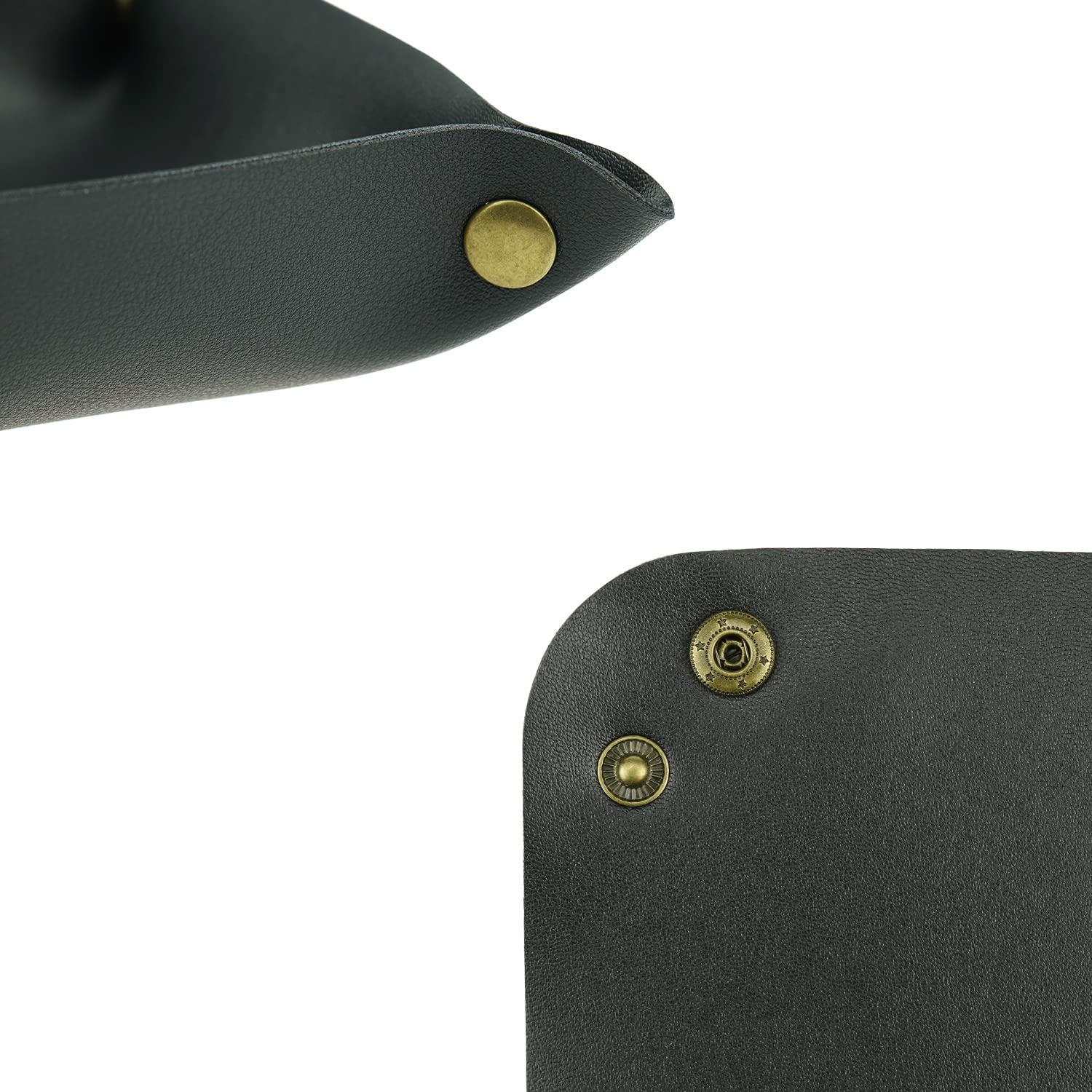- Original Jewelry Trays – EDC Essentials Organizer - Desktop/Nightstand Valet Tray for Jewelry, Phone, Wallet, Keys, Coins, Watch - Premium Artificial Leather, Brass Metal Rivets (9.8 x 9.8 inch, Black) by PhantAccy
