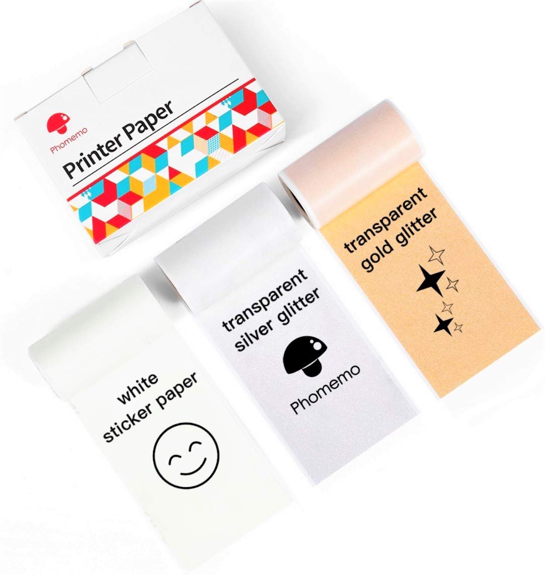 - Original Receipt Printers – Adhesive Thermal Sticker Paper,White/Gold Glitter/Silver Glitter Thermal Paper,for M02/T02/M02 Pro/M02S/M03/M03AS/M04S Thermal Pocket Printer/Receipt Printer, 50mm-53mm Width by Phomemo