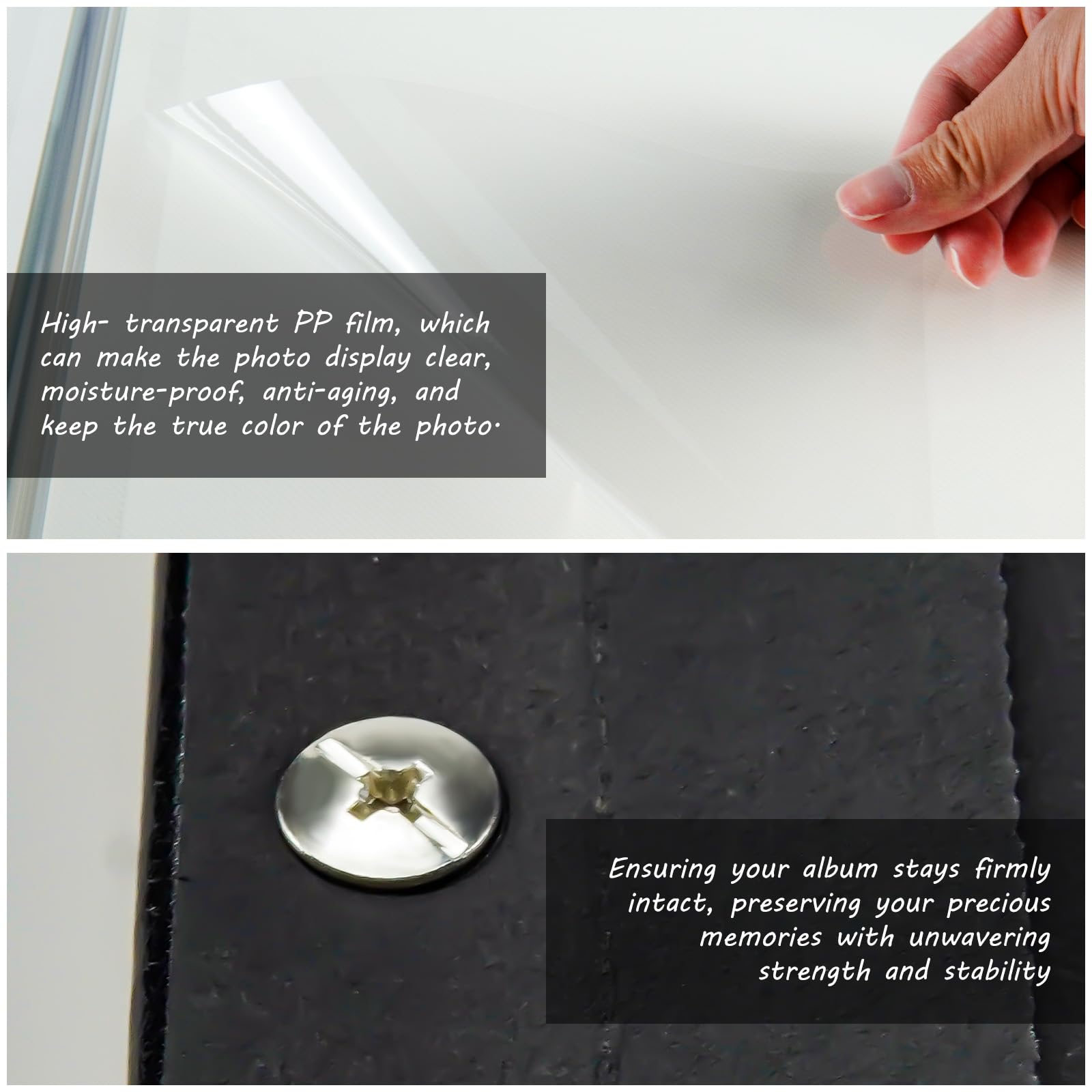 - PP HIGH-TRANSPARENT INNER POCKET: The inner pocket of the album is made of high- transparent PP film, which can make the photo display clear, moisture-proof, anti-aging, and keep the true color of the photo.