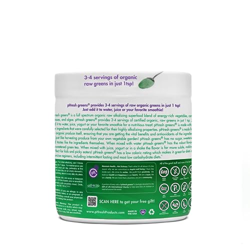 - Nutrient-Dense Formula: Each serving of pHresh Greens is packed with a powerful blend of organic greens, ensuring you get a wide spectrum of essential nutrients. From vitamins and minerals to enzymes and phytonutrients, our formula delivers comprehensive nourishment.