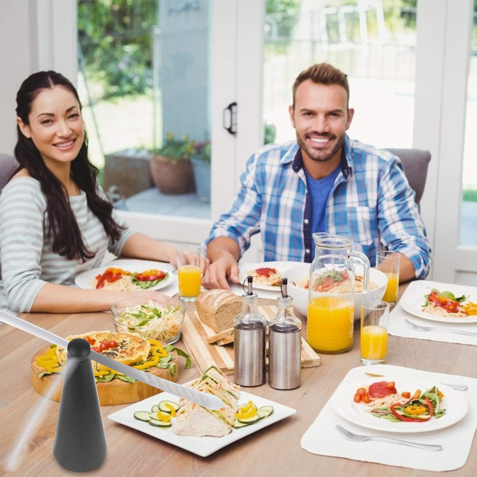 Keeps Flies Away From Your Food--You can finally enjoy a conversation over an outdoor meal without swatting flies all the time.This is a light-weight,odor-free fan you place on top of your outdoor or picnic table to keep flies from dive-bombing your food.