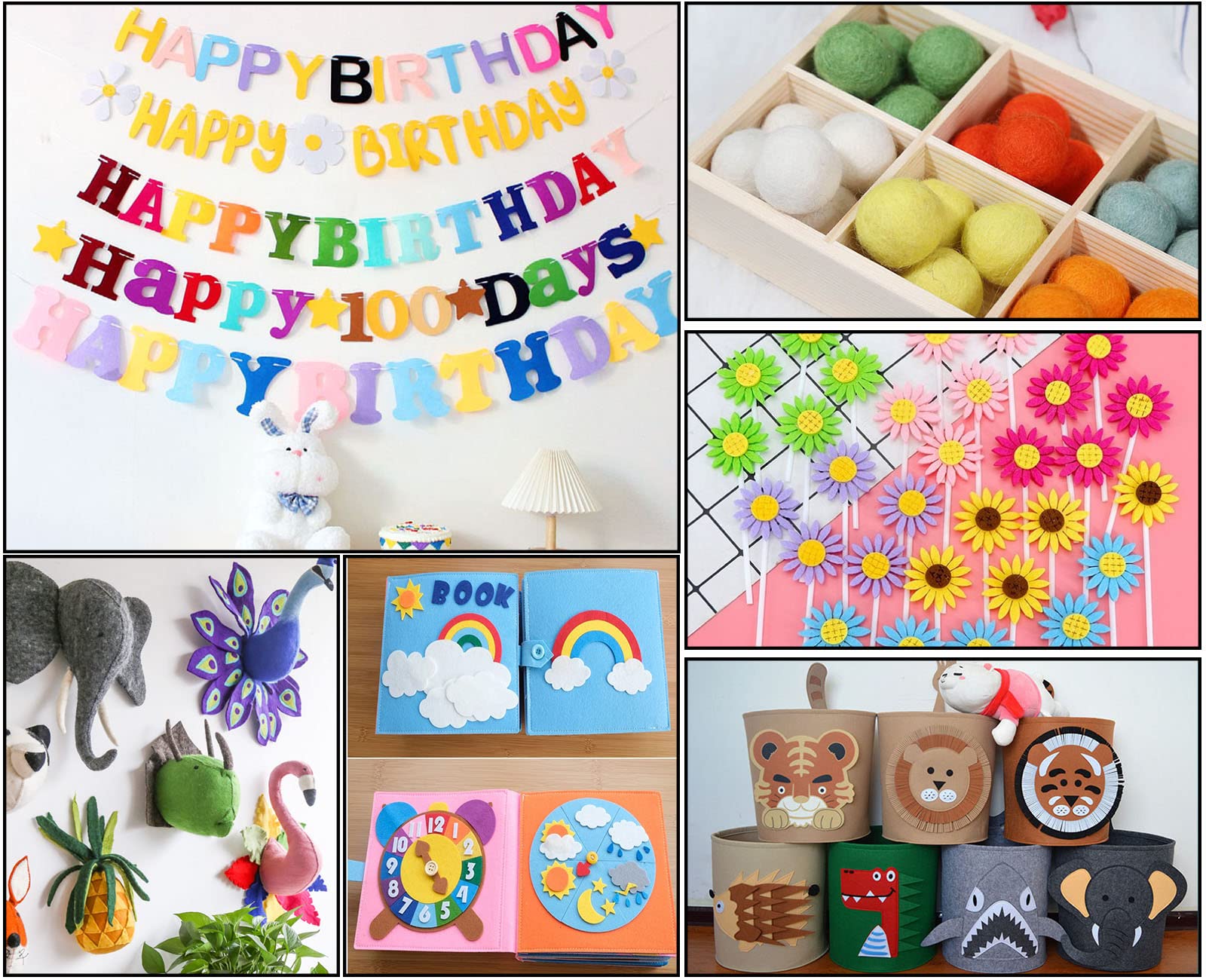 - Wide ApplicationsThese soft felt sheets are perfect for perfect for cutting sew ,making costumes, decorations, bulletin board backdrops and school projects.such as you can make hats,shoes, storage box,decorative boxes, cartoon animals,small bags, artifcial flowers,shoe accessories, christmas tree accessories ,hand stickers,a variety of handmade DIY and felt cloth related crafts.