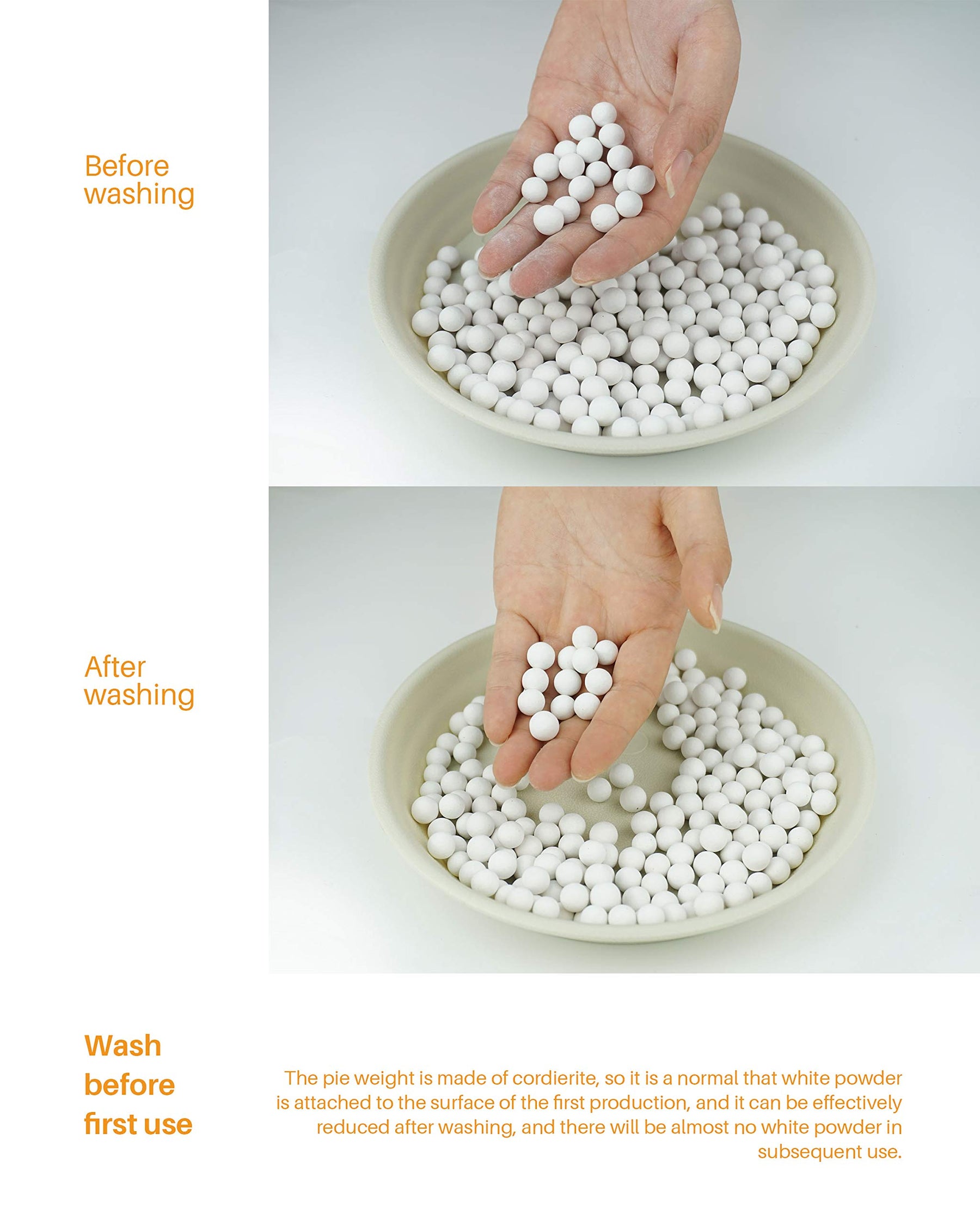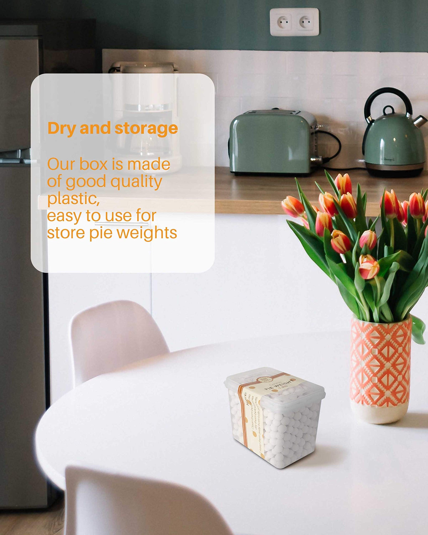 - CLEAN: clean pie weights for Baking and the storage box with soap water about 2-3 times before first use and air dry thoroughly before storage