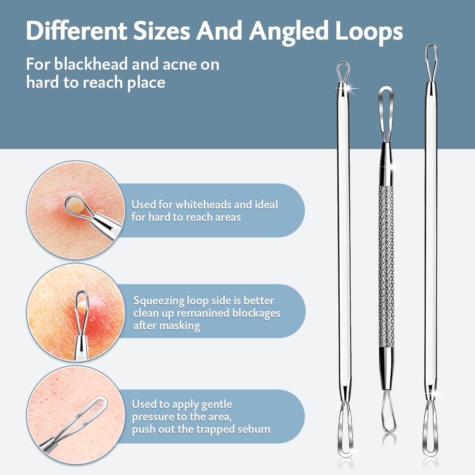 - Applicable Skin: Our pimple extractor set is fit on all types of skin, like sensitive face, oily skin, dry skin, especially suitable for acne skin. We suggest to use the blackhead remover after the acne ripe enough, and please wipe all tools with rubbing alcohol before and after each use.