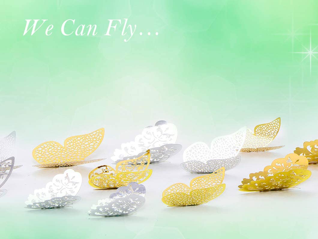- Quality Material - These metallic paper butterflies wall decor material are different from other butterfly decals,they are through special processing both lightweight and luxuriant,environmental.