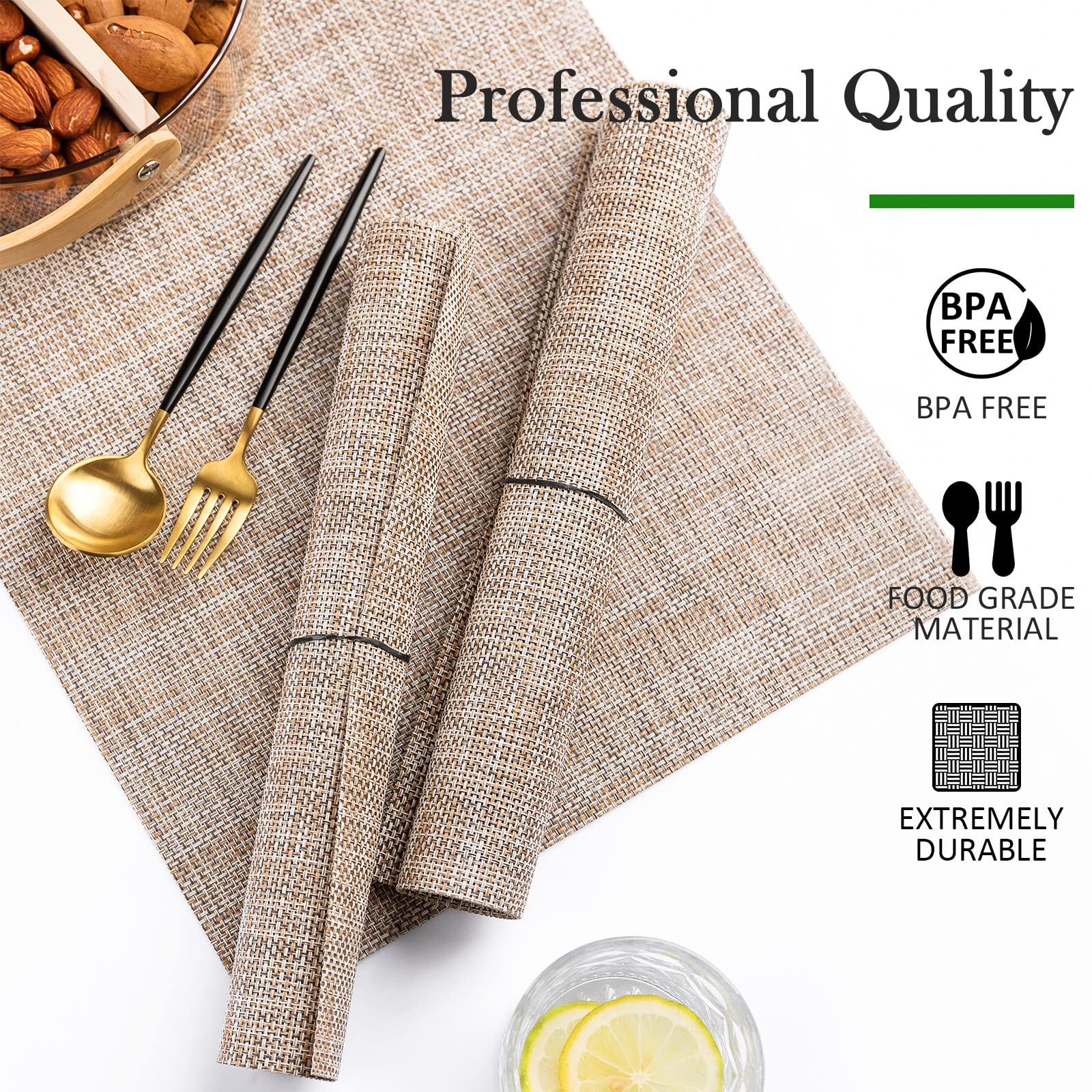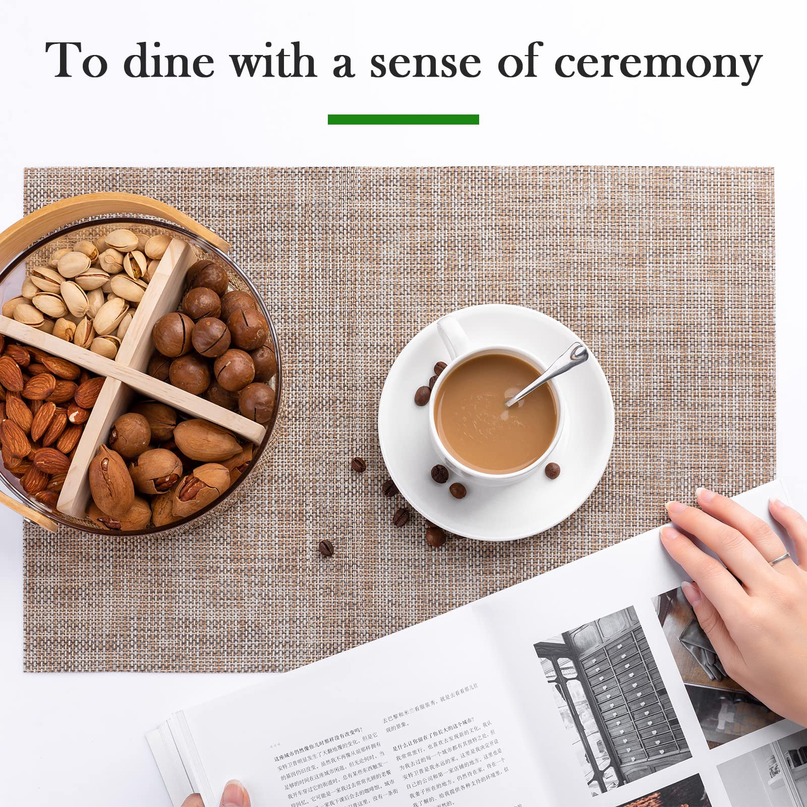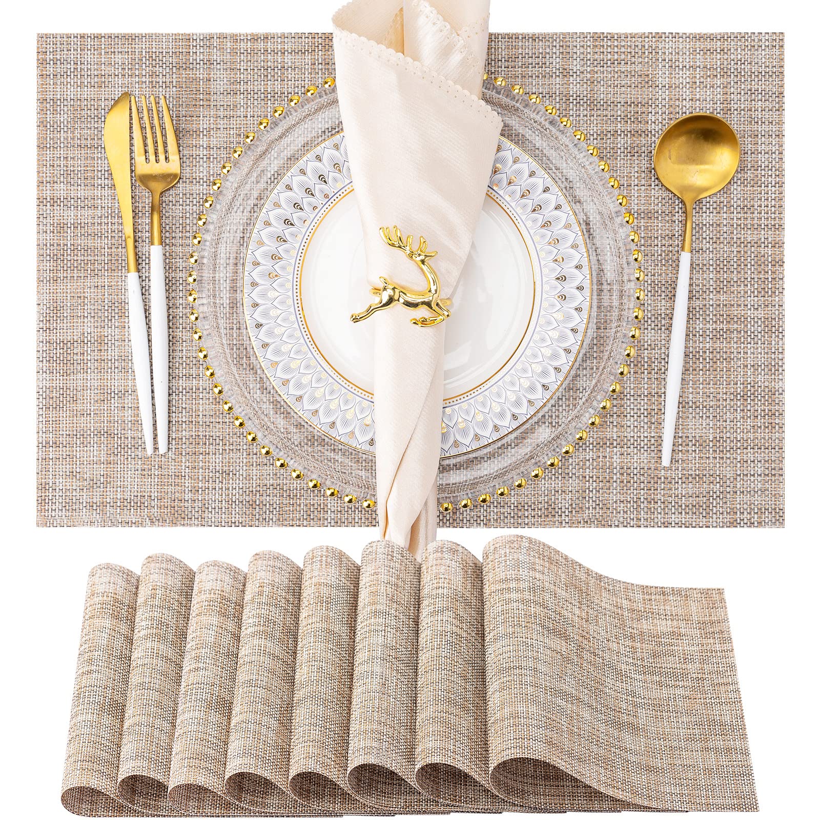 - Original Place Mats – Placemats Set of 8 Washable Indoor/Outdoor Vinyl Place Mats for Dining Table PVC Weave Table Mats(Caramel) by HGMO
