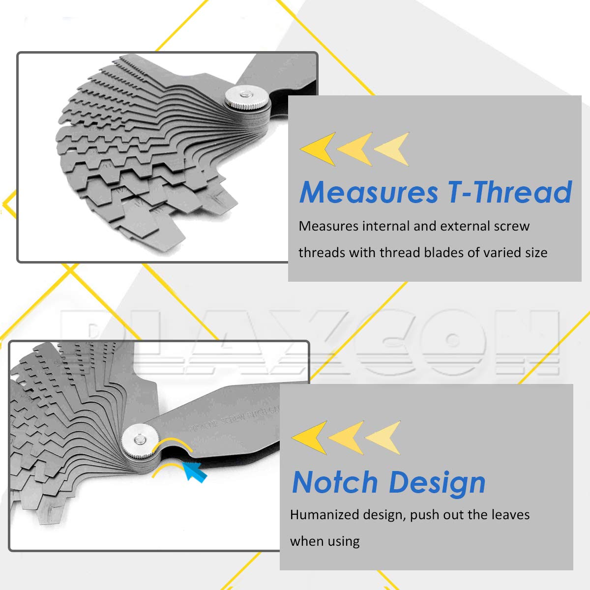 - Original Thread – 29 Degree Acme Screw Pitch Gauge Stainless Steel Thread Pitch Measuring Tool Set T-Thread Cutting Gage 16pcs by PLAXCON