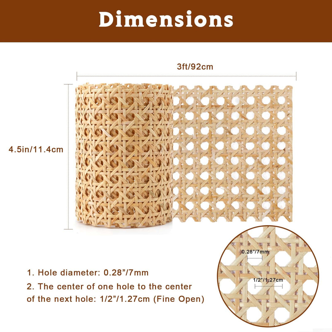 - Original Basket Making – 4.5” Width Natural Rattan Cane Webbing Roll, Pre-Woven Wicker Cane Webbing Net 1/2 Fine Open Mesh Cane for Furniture Decor, Caning DIY Projects (3 Feet Roll) by Pllieay