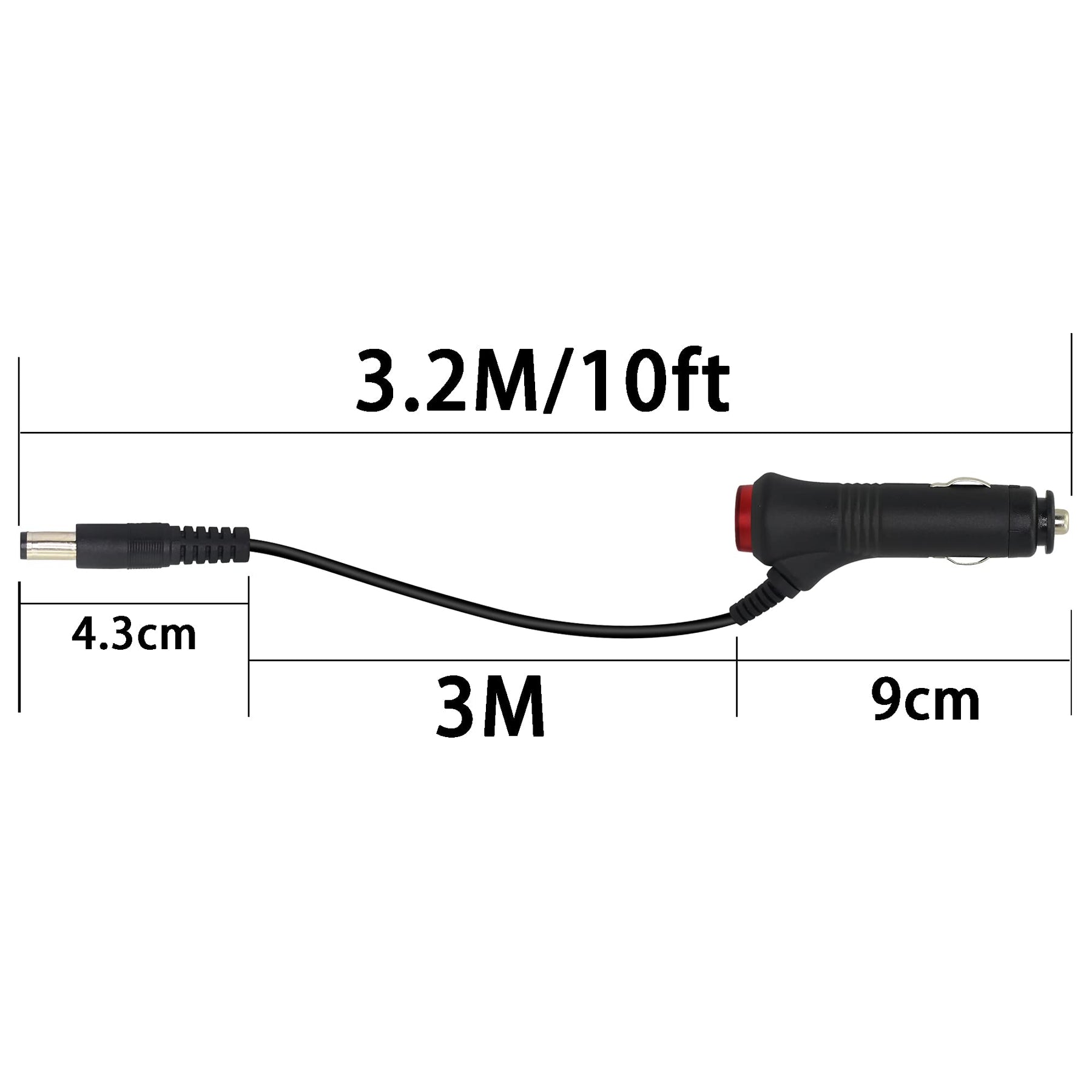 - Original Categories – 12V DC Car Charger Auto Power Supply 22AWG with Switch Button Cable DC 5.5mm x 2.1mm to Car Cigarette Lighter Male Plug Cable with Indicator Light(3M) by PNGKNYOCN